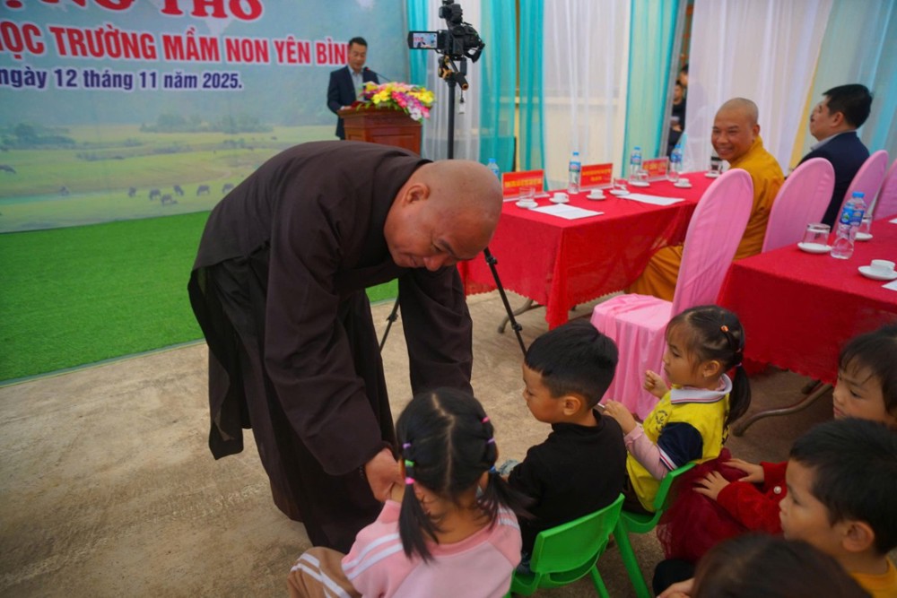 Đón tiếp phái đoàn có Thượng tọa Thích Quảng Truyền, Ủy viên HĐTS, Trưởng ban Trị sự GHPGVN tỉnh Lạng Sơn; Đại đức Thích Bản Chung, Phó Trưởng ban Thường trực BTS, Trưởng ban Từ thiện xã hội GHPGVN tỉnh; cùng đại diện chính quyền địa phương gồm ông Hồ Công Liêm, Phó Giám đốc Sở Giáo dục & Đào tạo tỉnh Lạng Sơn; ông Vũ Văn Thịnh, Bí thư – Chủ tịch HĐND xã Yên Bình; Ban Giám hiệu nhà trường và các em học sinh.
