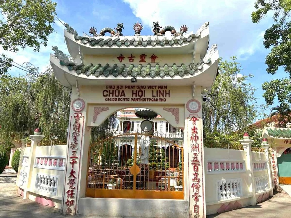 Chùa Hội Linh (Hội Linh Cổ Tự) cách đường Cách Mạng Tháng 8 (phường Bình Thủy, TP Cần Thơ) hướng ra sông Hậu. Ngôi chùa cổ này có diện tích 6.500 m2.