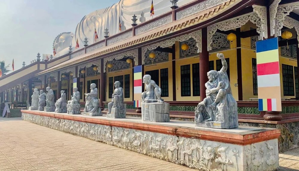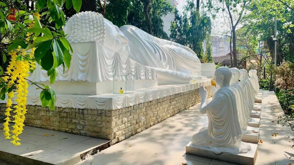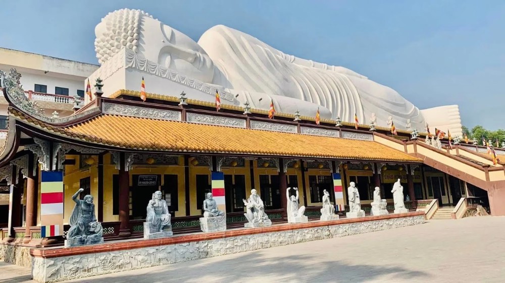 Ngôi chùa nổi tiếng với tượng Phật nằm - tượng Phật niết bàn dài 52 m, cao 12 m, đặt trên mái tòa nhà chính của Trung tâm Văn hóa Phật giáo tỉnh Bình Dương trước đây, cách mặt đất khoảng 23 m. Đây được xem là tượng Phật nằm trên mái dài nhất châu Á.