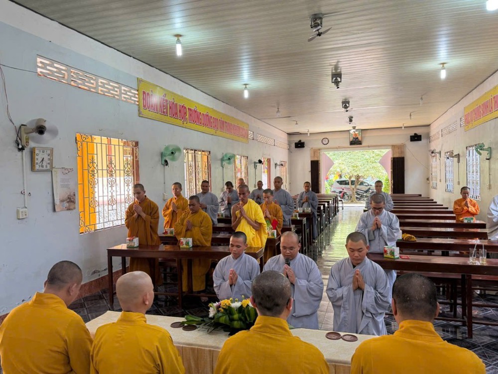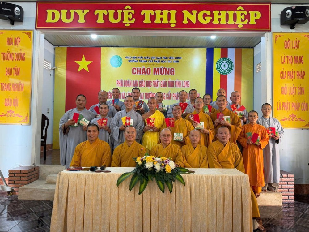 Sau nghi thức tưởng niệm, Ban Giám hiệu đã lần lượt đến ba cơ sở đào tạo của Trường Trung cấp Phật học tỉnh Vĩnh Long để thăm hỏi và sách tấn Tăng Ni sinh.