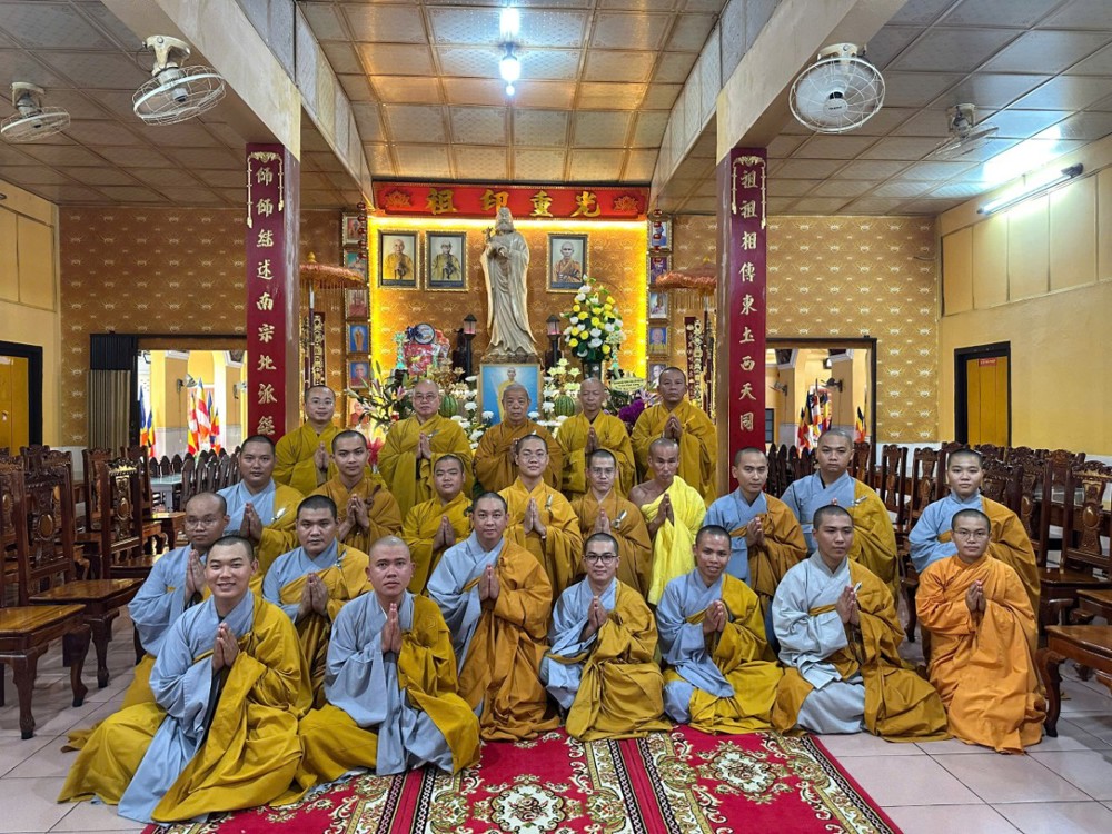 Buổi lễ diễn ra trong không khí trang nghiêm, dưới sự chứng minh của Hòa thượng Thích Trí Minh – Ủy viên Hội đồng Trị sự GHPGVN, Phó Thường trực Ban Trị sự GHPGVN tỉnh Vĩnh Long. Trong làn khói trầm thanh tịnh, chư tôn đức nhất tâm dâng nén tâm hương, bày tỏ lòng tri ân sâu sắc đối với bậc Tổ sư tiền bối đã khai sơn Tổ đình Lưỡng Xuyên - dựng lập đạo tràng, góp phần vun bồi nền giáo dục Phật học cho Tăng Ni hậu học.
