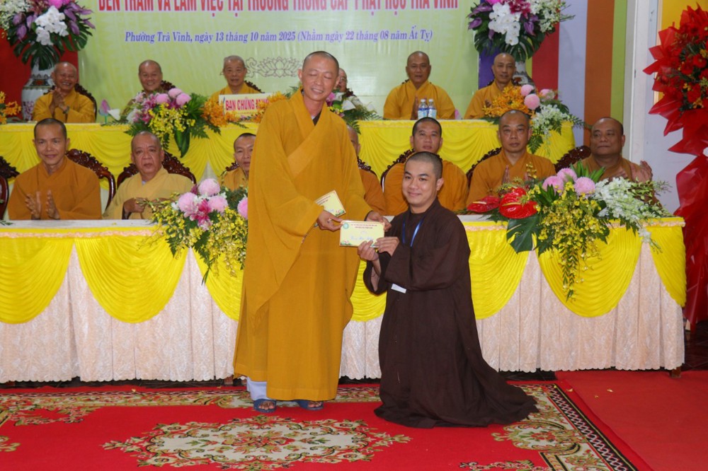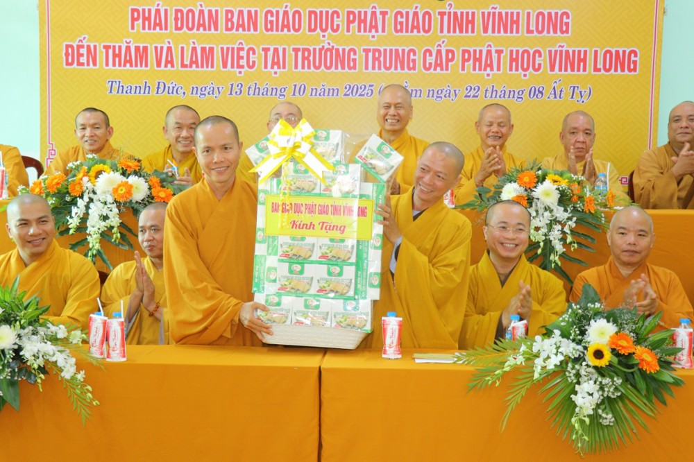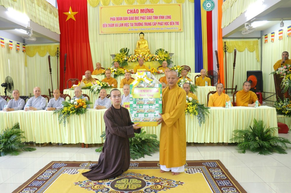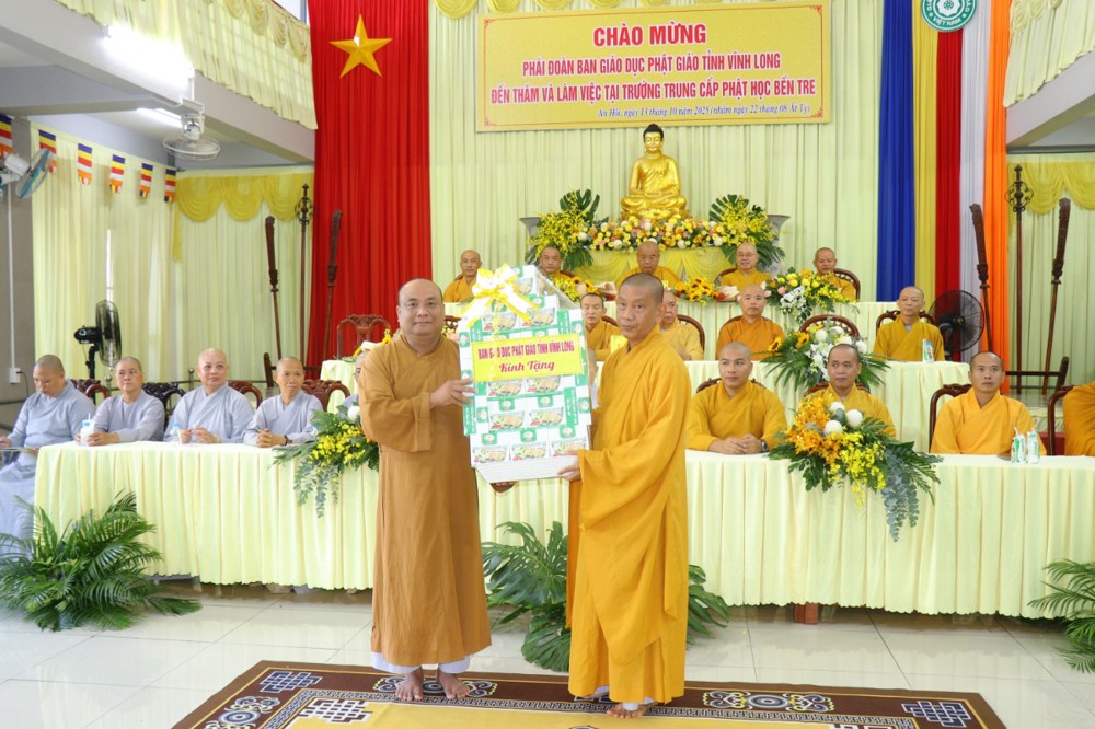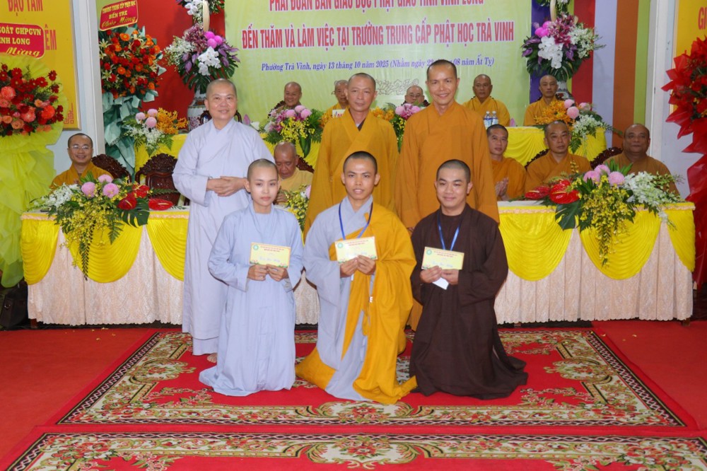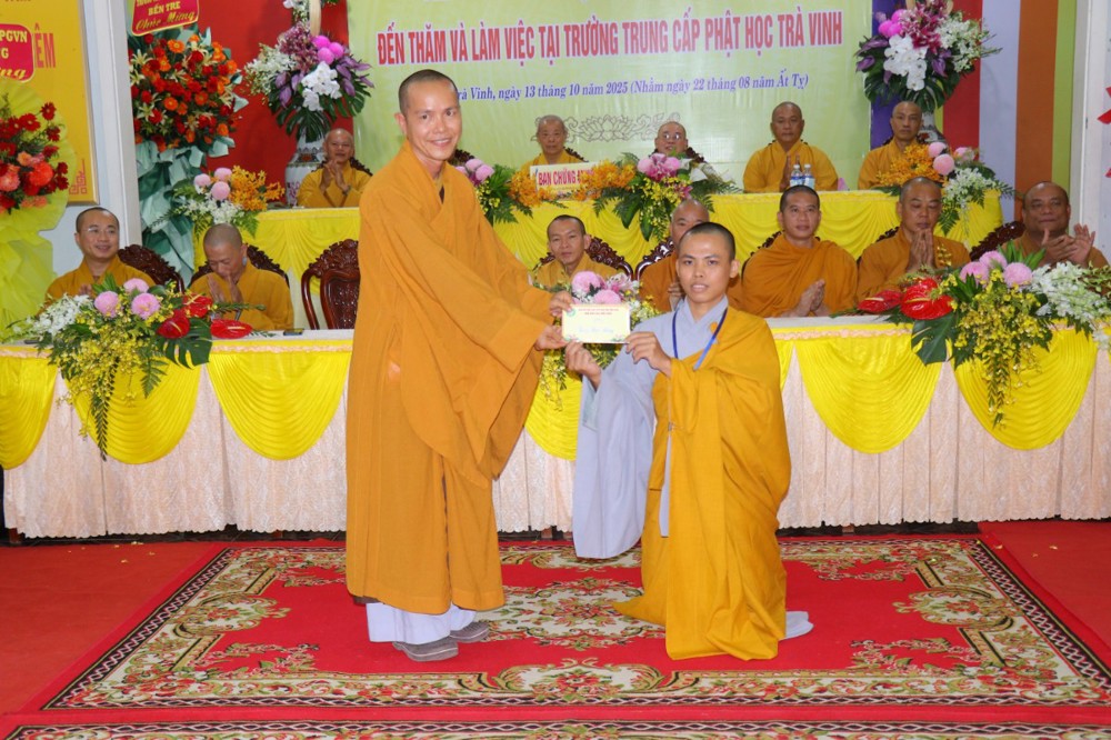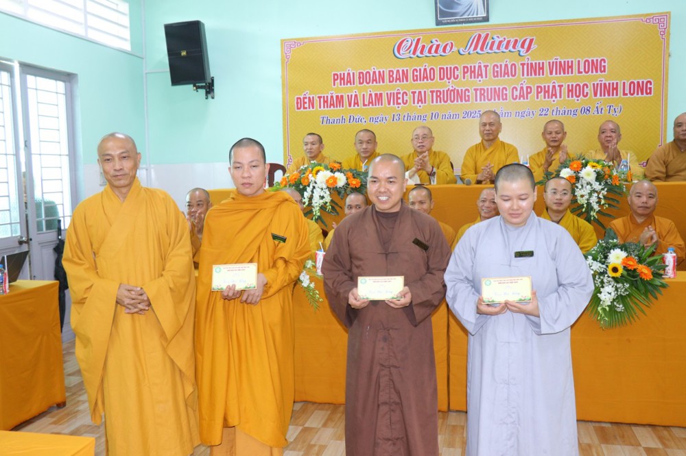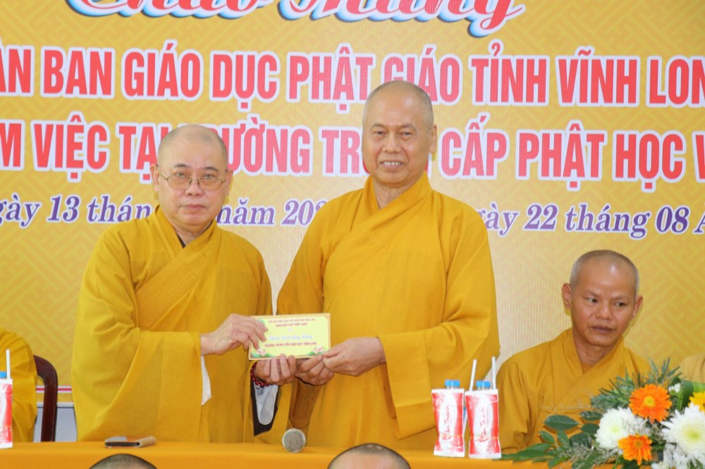 Nhân dịp, Ban Giáo dục Phật giáo tỉnh Vĩnh Long đã trao tặng mỗi Trường TCPH 10 triệu đồng để hỗ trợ công tác đào tạo; Cùng 9 suất học bổng dành cho 9 Tăng Ni sinh tiêu biểu của 3 trường. Món quà tuy nhỏ nhưng chan chứa đạo tình, thể hiện niềm tin yêu và kỳ vọng nơi thế hệ kế thừa.