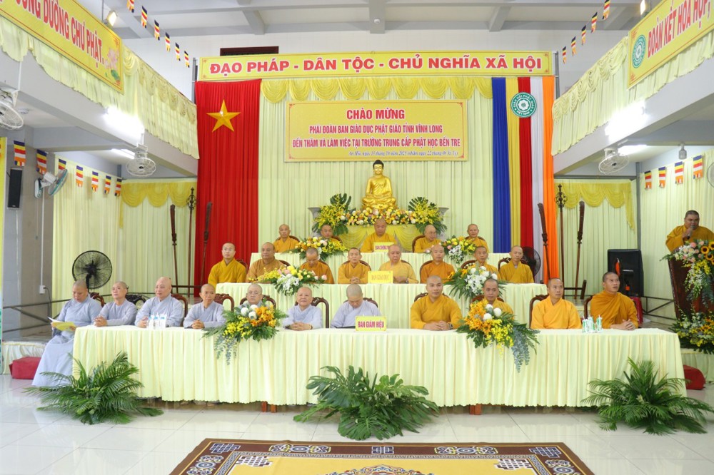 Tại Bến Tre, trong lời phát biểu chào mừng TT. Thích Trí Thọ – Ủy viên HĐTS, Phó Thường trực BTS GHPGVN tỉnh Vĩnh Long đã tán dương tinh thần đoàn kết, trách nhiệm và sự quan tâm sâu sát của Ban đối với công tác giáo dục tại các Trường Phật học. Qua đó, Thượng tọa nêu ba điểm trọng tâm: