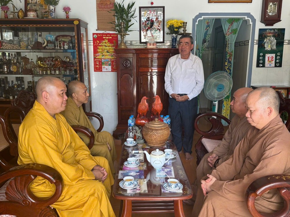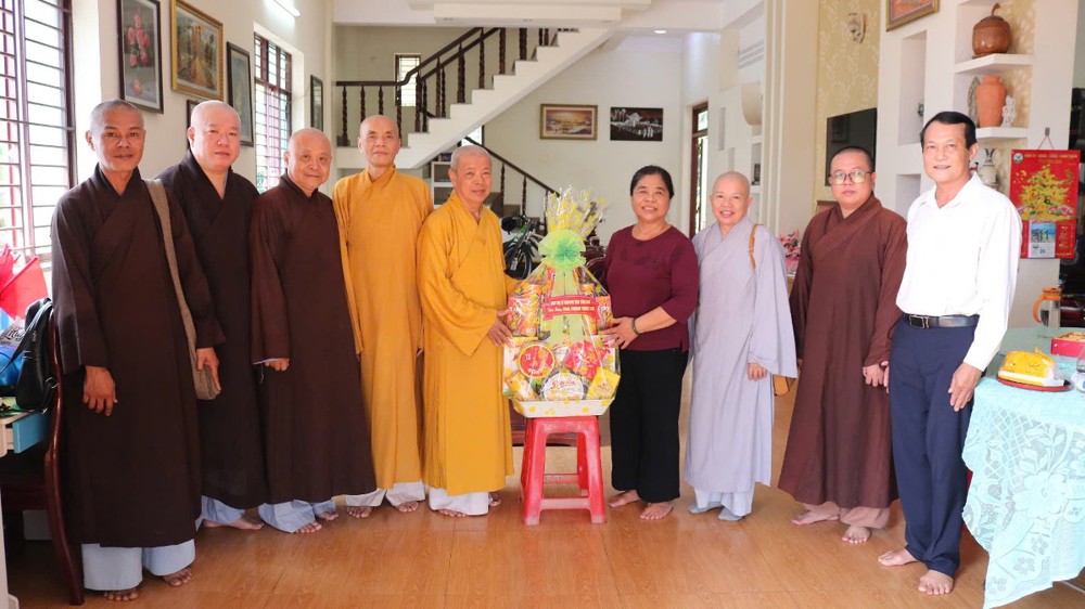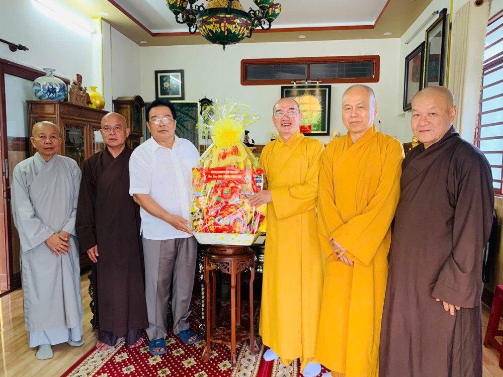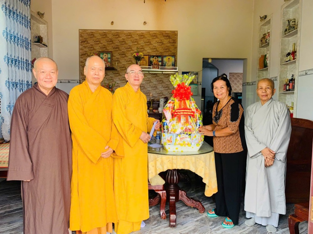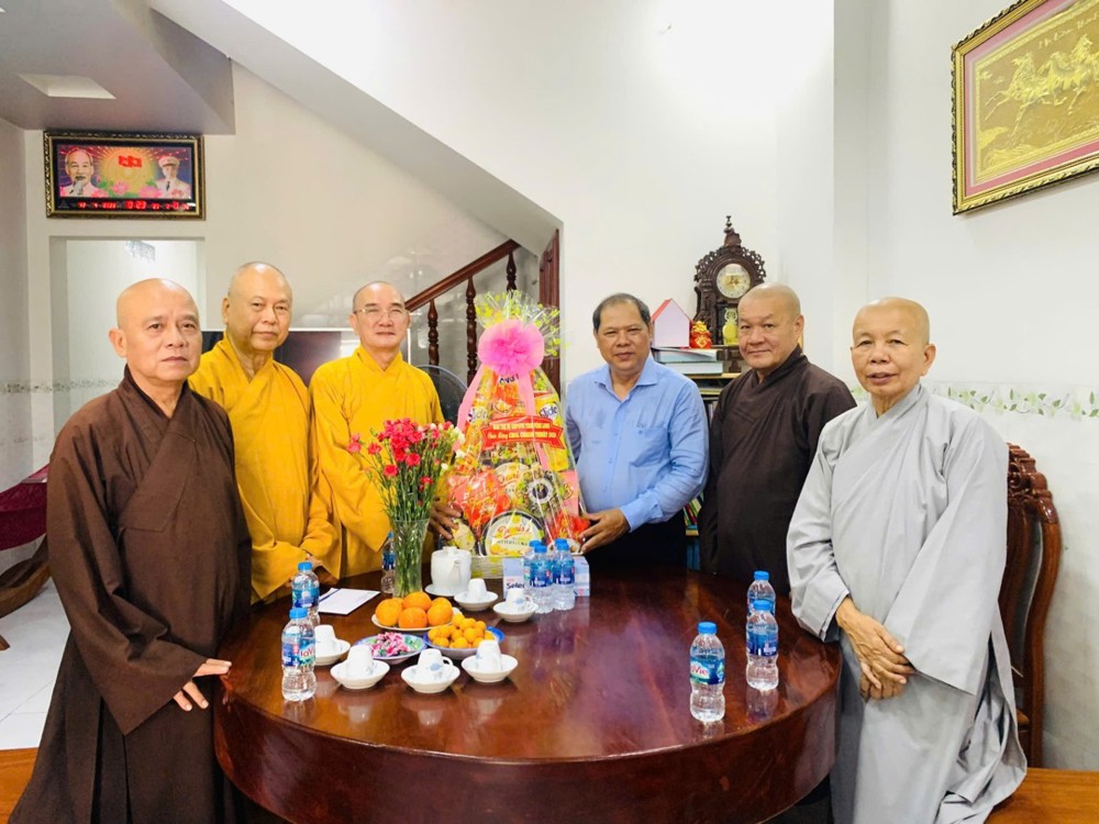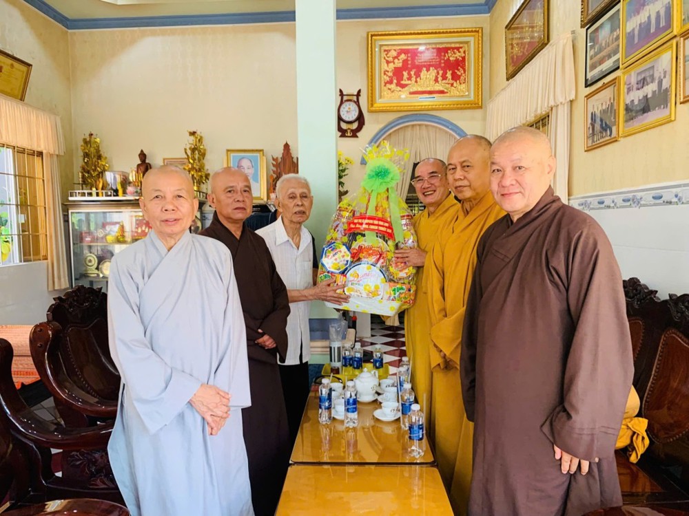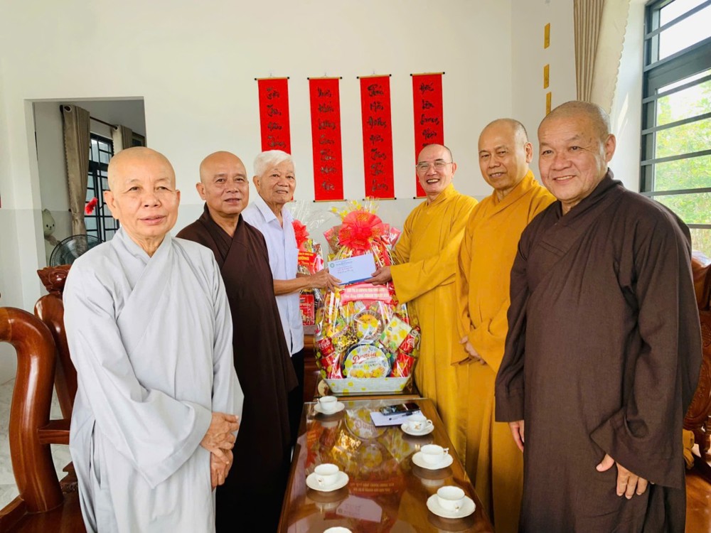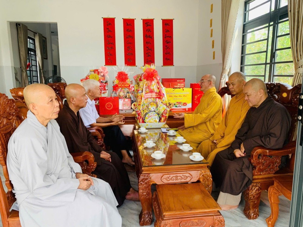 Đoàn đến thăm và chúc Tết Trưởng lão Hòa thượng Sơn Tơn - Thành viên HĐCM, Chứng minh BTS GHPGVN tỉnh, Cố vấn Hội ĐKSSYN tỉnh, Viện chủ chùa Chòm Ca;