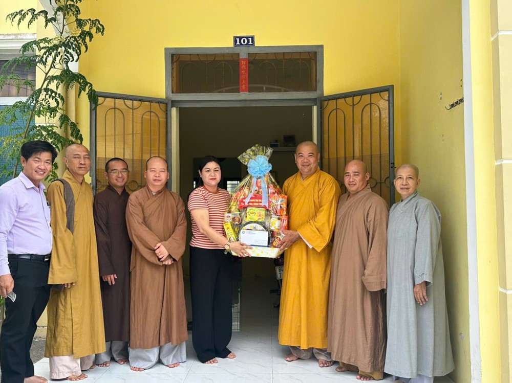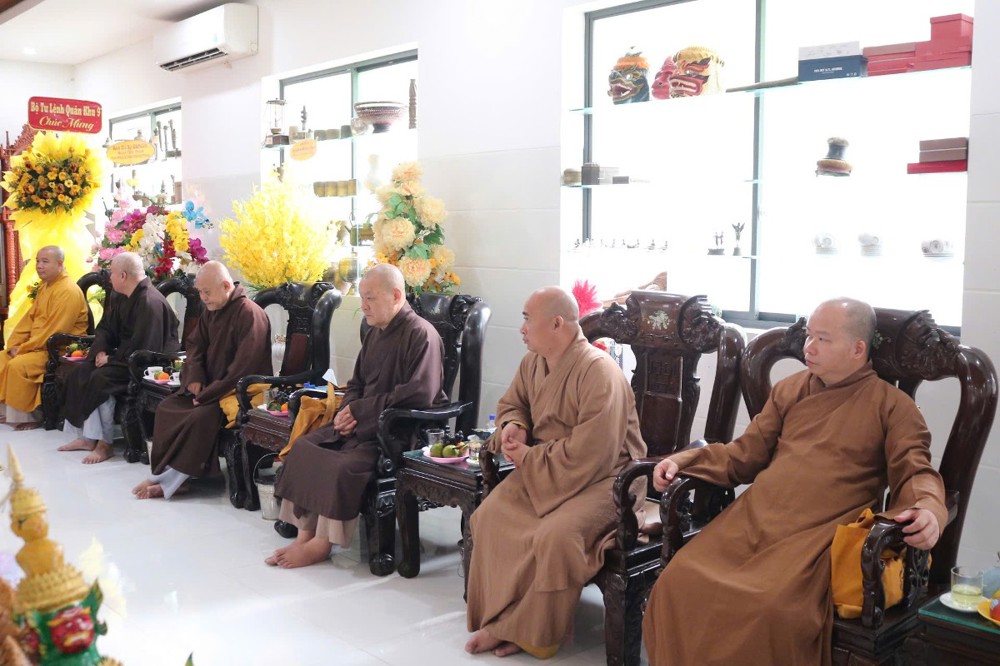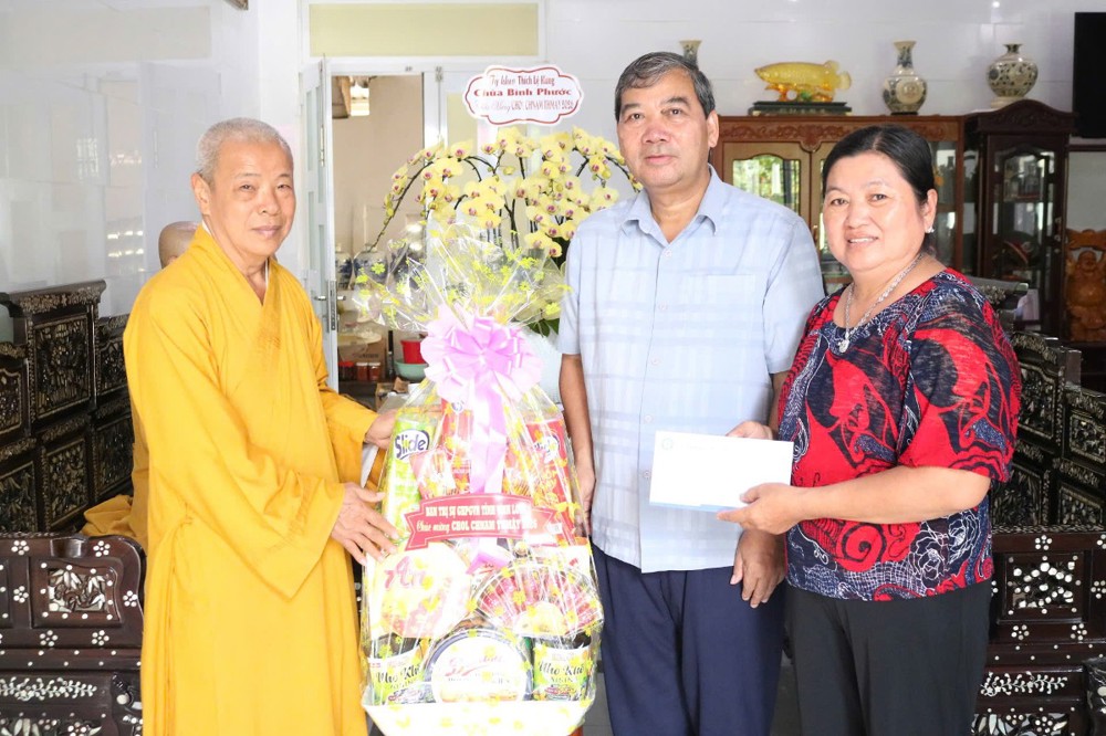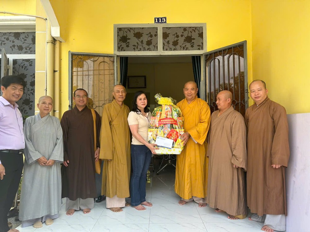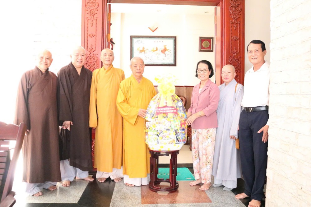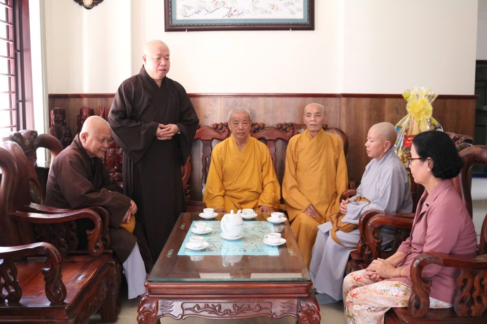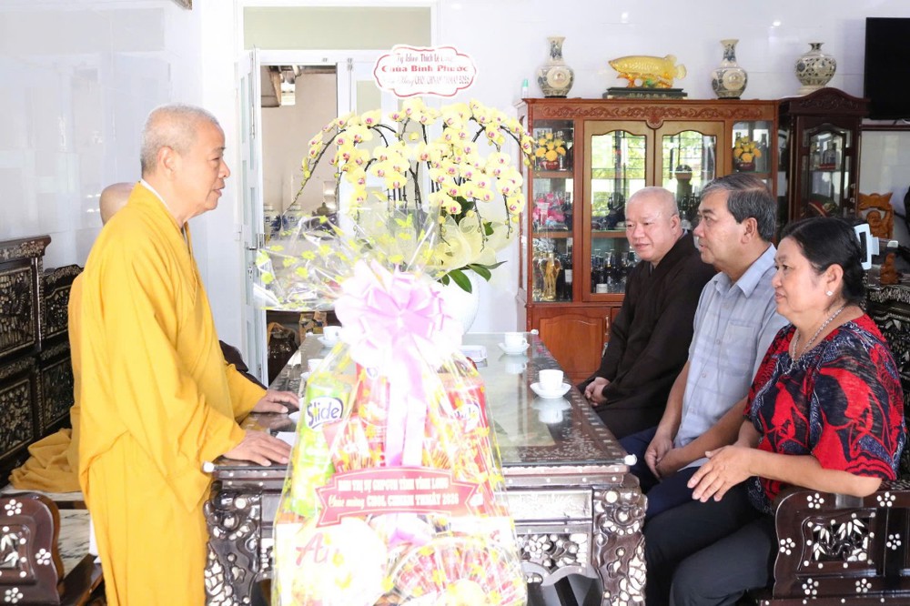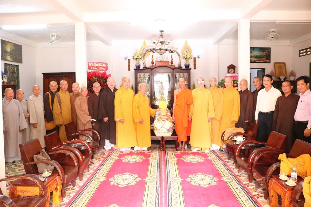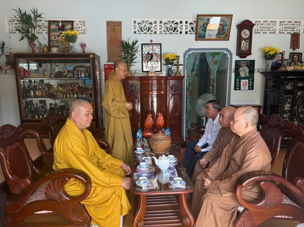 Đoàn đến thăm và chúc Tết Trưởng lão Hòa thượng Sơn Tơn - Thành viên HĐCM, Chứng minh BTS GHPGVN tỉnh, Cố vấn Hội ĐKSSYN tỉnh, Viện chủ chùa Chòm Ca;