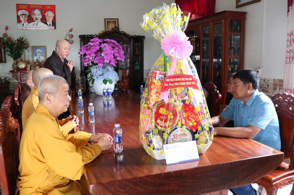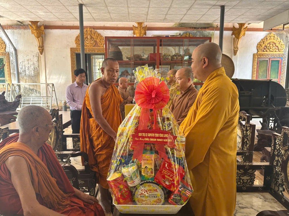 Tại các chùa, chư vị Hòa thượng, Thượng tọa đại diện cho phái đoàn, nhân dịp Tết cổ truyền Chôl Chnăm Thmây của đồng bào dân tộc Khmer, ân cần gửi lời vấn an sức khỏe, chúc chư Tôn đức giáo phẩm đạo thọ miên trường, Phật sự viên thành, tiếp tục dìu dắt, hướng dẫn, chỉ đạo để BTS GHPGVN tỉnh Vĩnh Long hoàn thành mỗi công tác Phật sự, nhiệm vụ được giao. Nhân đây, Thường trực BTS GHPGVN tỉnh thông qua quý Hoà thượng chuyển lời thăm hỏi, chúc toàn thể chư Tăng và bà con Phật tử tại bổn tự đón mừng Tết cổ truyền Chôl Chnăm Thmây năm 2026 an lạc, hạnh phúc và thành đạt trong các lĩnh vực.