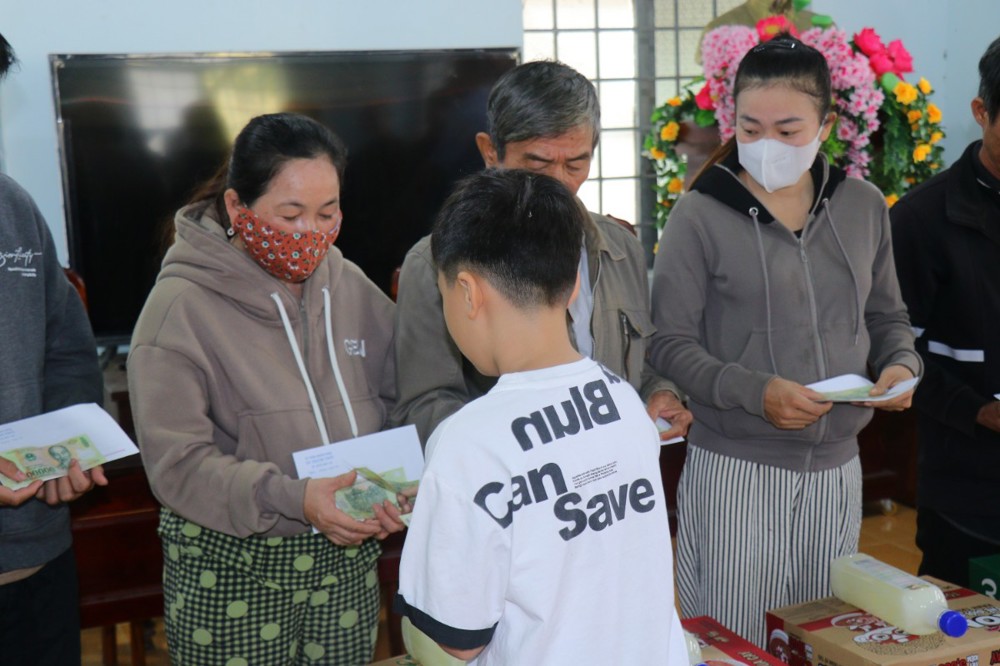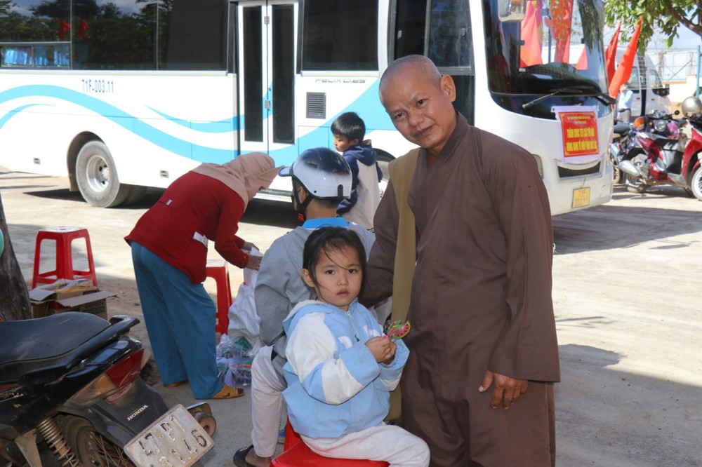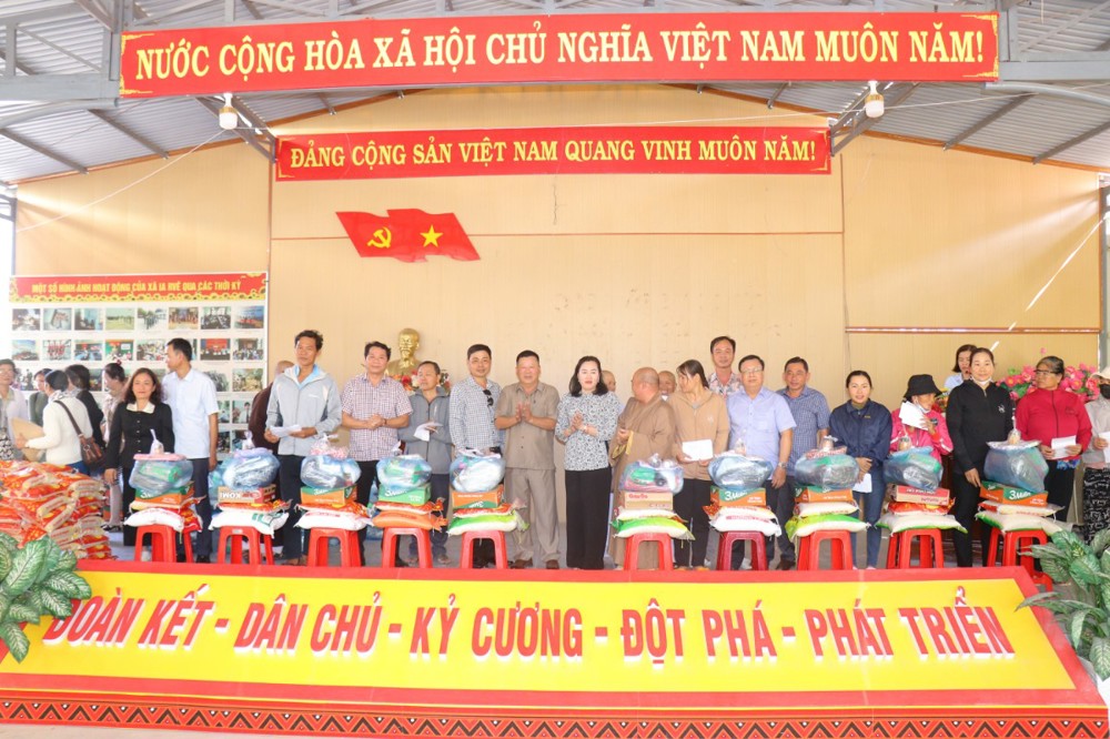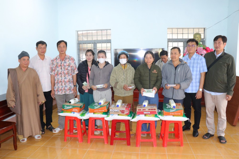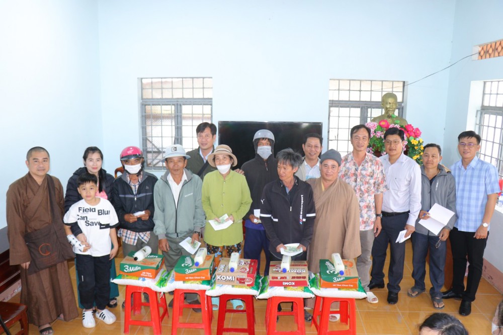 Tại đây, đoàn đã trao tặng 1.000 phần quà, gồm: gạo, mì, bao lì xì và một số nhu yếu phẩm thiết yếu; mỗi phần quà trị giá khoảng 500 nghìn đồng, với tổng giá trị chuyến đi khoảng 500 triệu đồng. Đây là những món quà nghĩa tình do bà con Phật tử khu vực Bến Tre cũ gửi gắm, nhằm sẻ chia và làm ấm lòng đồng bào vùng kinh tế mới nhân dịp Xuân Bính Ngọ sắp về.