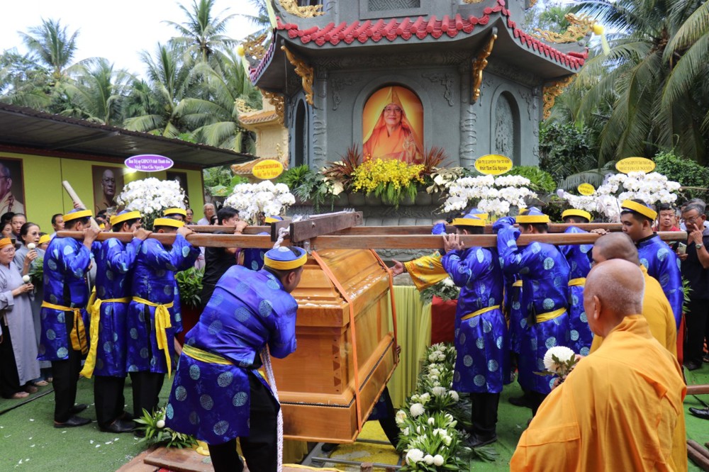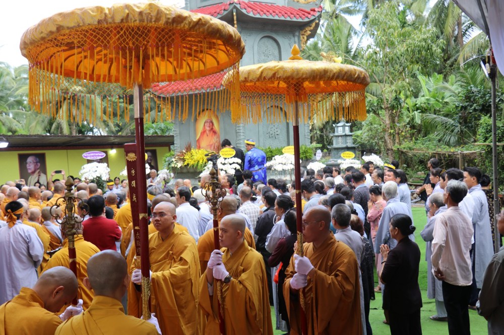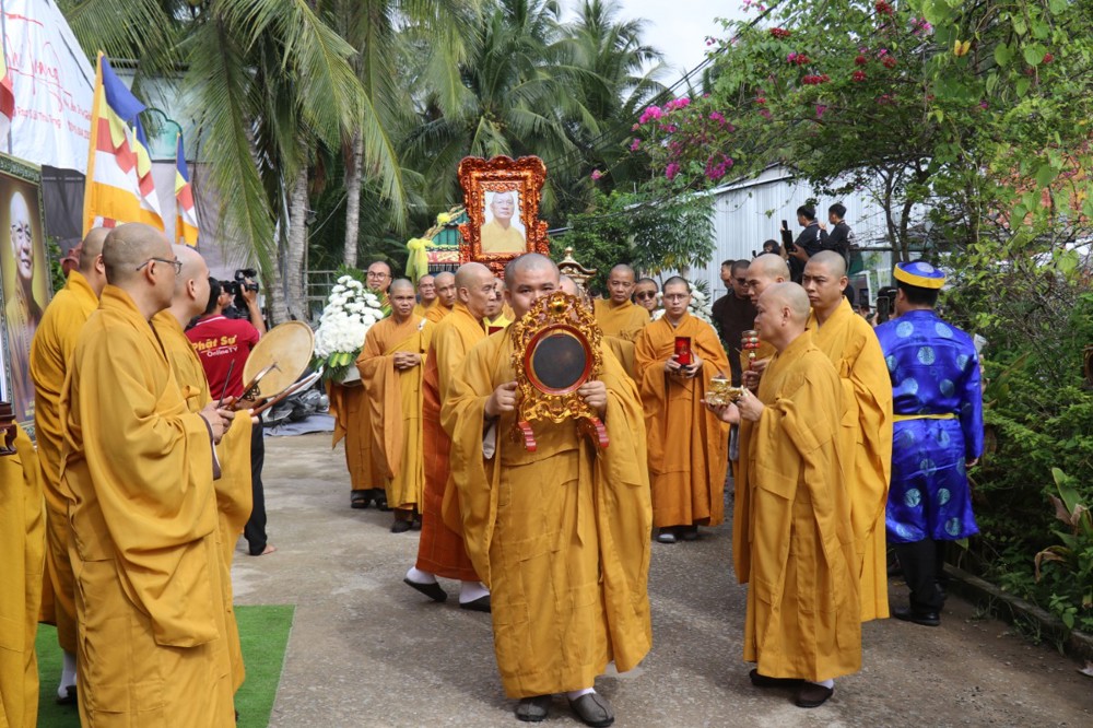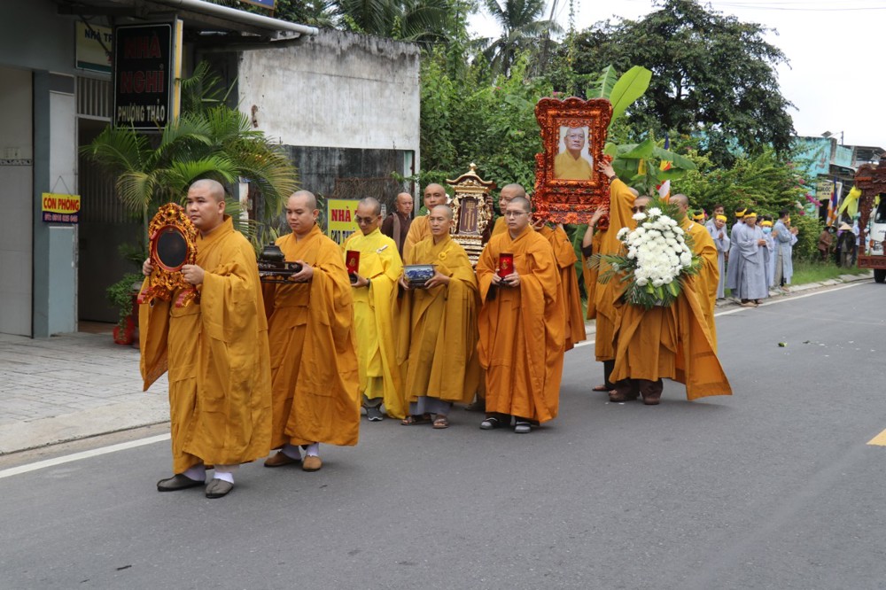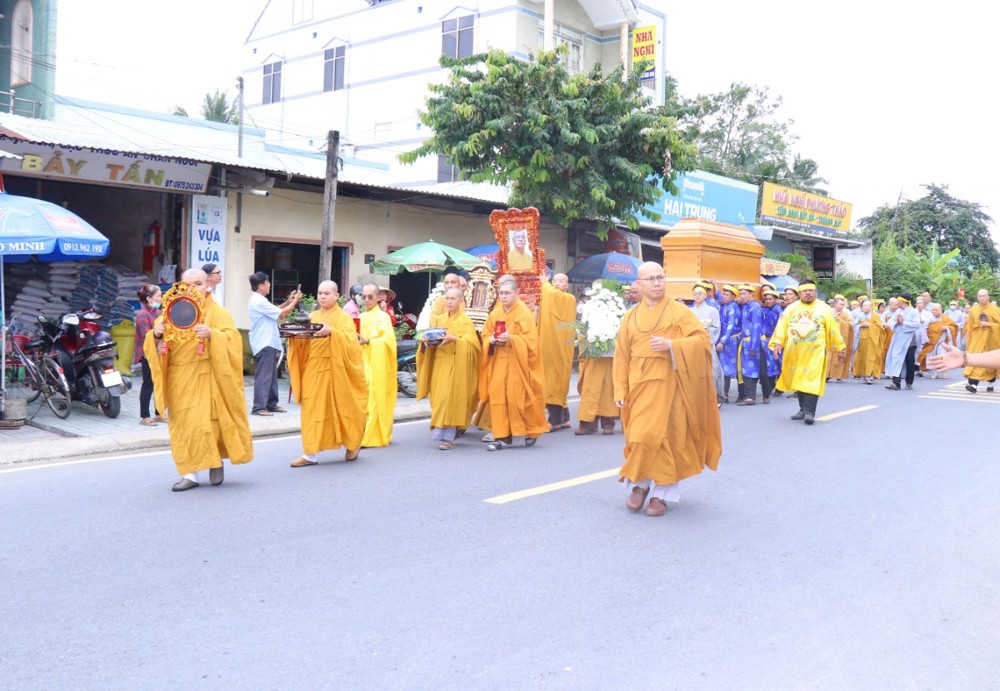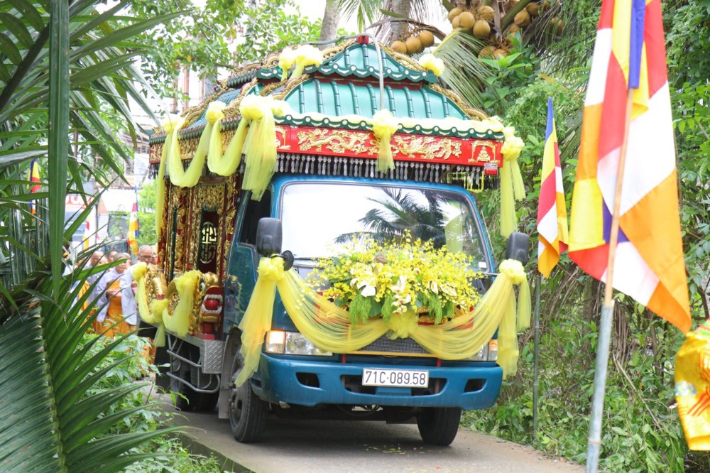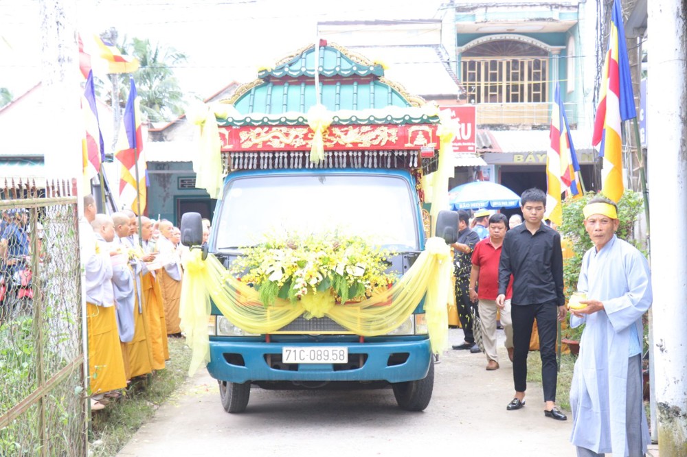 Đúng 8 giờ 30 phút sáng, đoàn xe tang lặng lẽ đưa kim quan Cố Hòa thượng trở về đến quê hương xứ dừa hiền hòa. Sự trở về của Hòa thượng an nhiên, tĩnh tại, như đóa sen nở giữa lòng đất mẹ. Khép lại một hành trình trọn vẹn phụng sự đạo pháp và dân tộc, để lại hương thơm từ bi và trí tuệ lan tỏa cho đời.