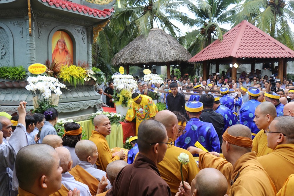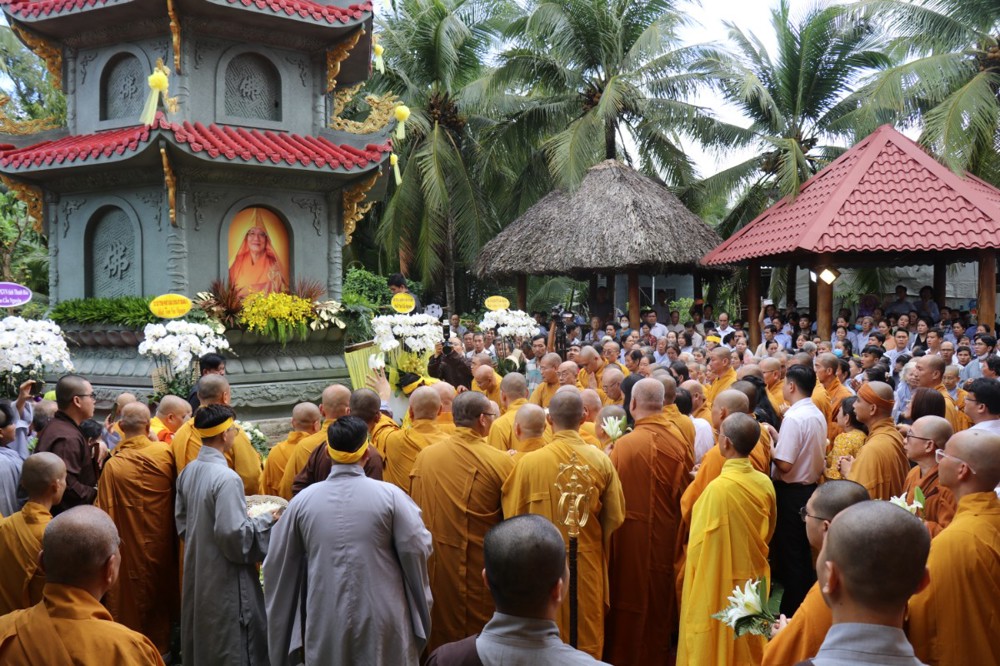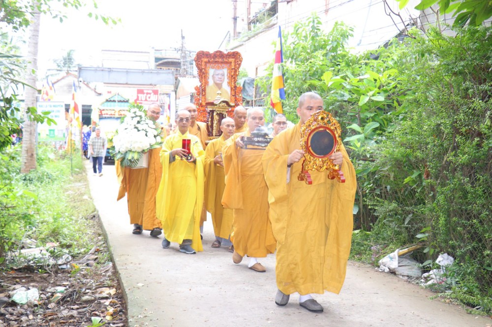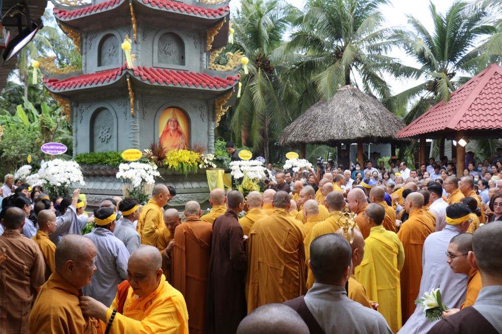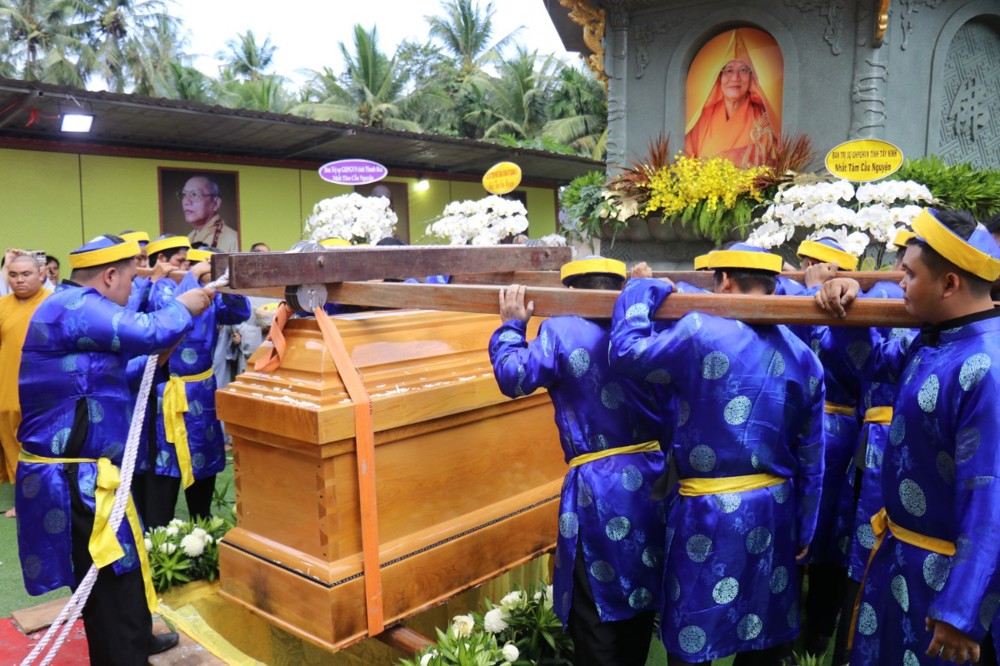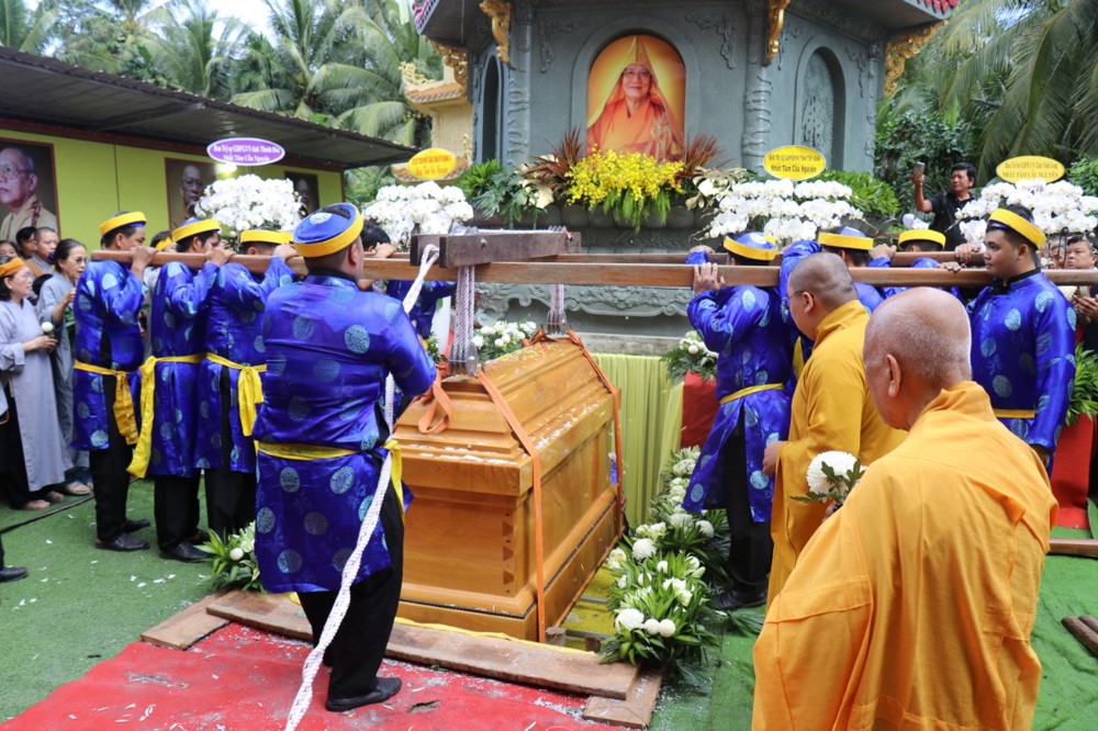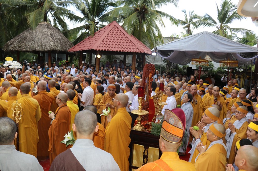 Đúng 8 giờ 30 phút sáng, đoàn xe tang lặng lẽ đưa kim quan Cố Hòa thượng trở về đến quê hương xứ dừa hiền hòa. Sự trở về của Hòa thượng an nhiên, tĩnh tại, như đóa sen nở giữa lòng đất mẹ. Khép lại một hành trình trọn vẹn phụng sự đạo pháp và dân tộc, để lại hương thơm từ bi và trí tuệ lan tỏa cho đời.