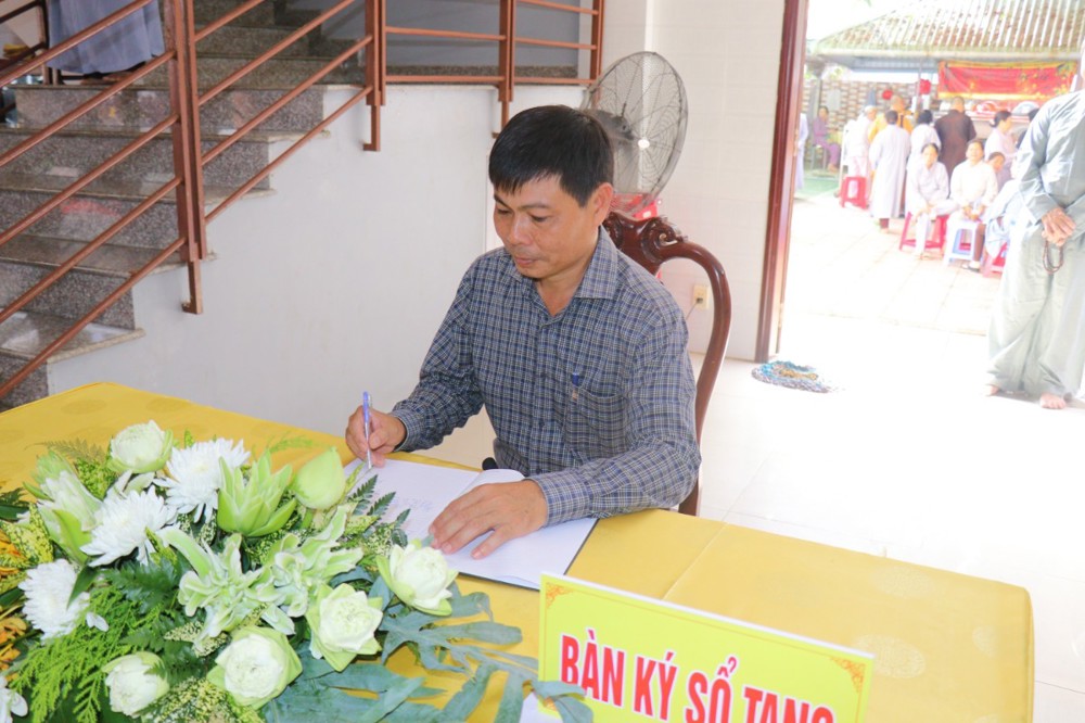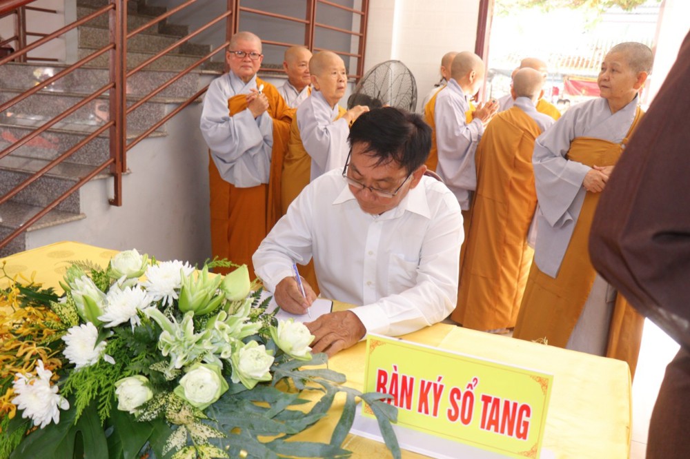Tại Giảng đường chùa Long Phú, chư Tôn đức Giáo phẩm cùng đại diện chính quyền đã dâng hương tưởng niệm, bày tỏ lòng tôn kính và tri ân sâu sắc tiễn biệt Cố Trưởng lão Hòa thượng Thích Thiện Tánh và ký sổ tang lưu niệm.