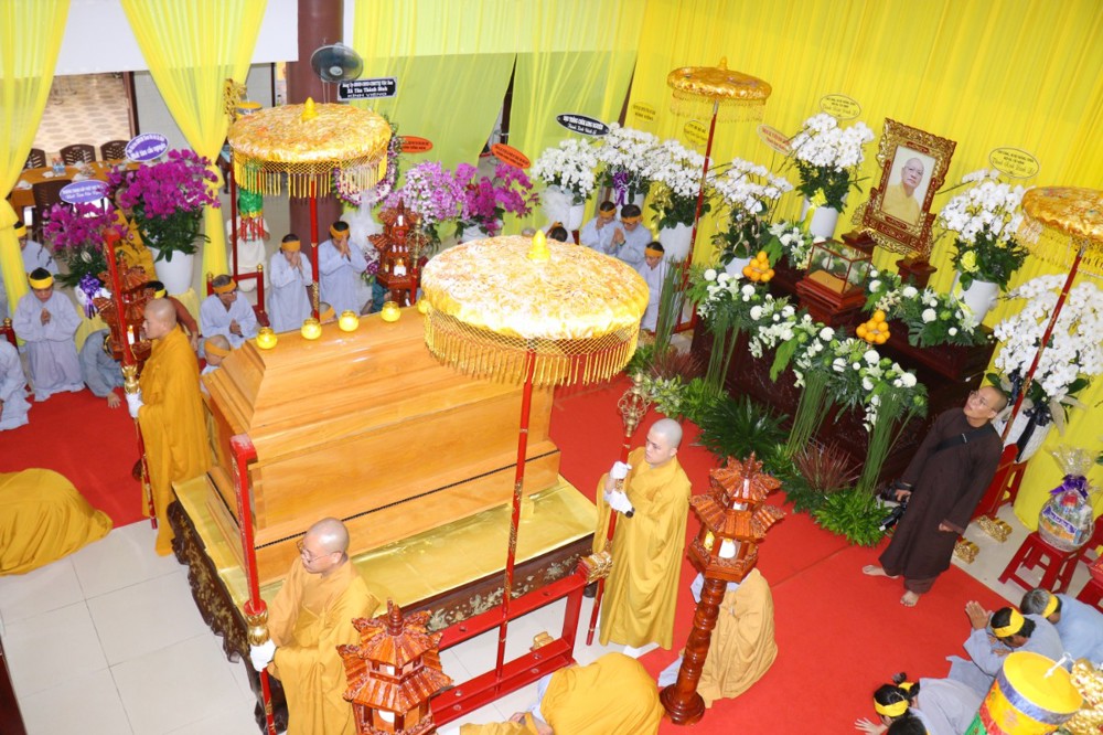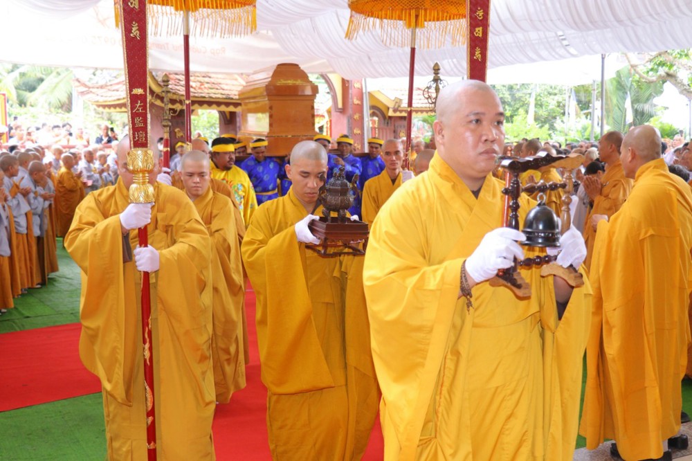 HT. Thích Lệ Trang -  Phó Chủ tịch HĐTS, Trưởng ban Nghi Lễ GHPGVN, Trưởng BTS GHPGVN TP. HCM đương vi sám chủ lễ tiễn đưa kim quan cố Hòa thượng nhập bào tháp