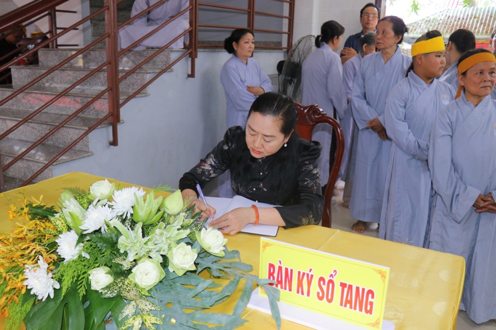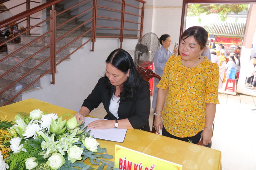 Phó chủ tịch UBND tỉnh Vĩnh Long Nguyễn Thị Bé Mười ký sổ tang