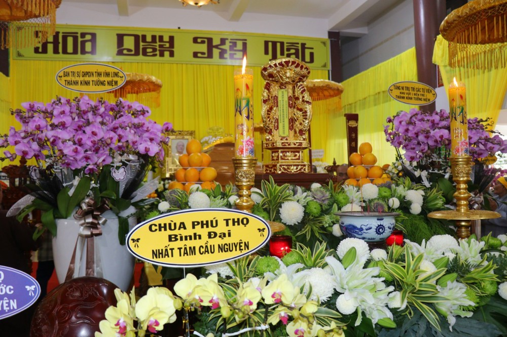 Thay mặt Tăng Ni và Phật tử tỉnh nhà,  HT. Thích Nhựt Tấn - Ủy viên Thường trực Hội đồng Trị sự, Phó Ban Kiểm soát Trung ương GHPGVN, Chứng minh Ban Trị sự GHPGVN tỉnh Vĩnh Long, đã xúc động dâng lời tưởng niệm sâu sắc, tán dương công hạnh và đạo nghiệp của Cố Trưởng lão Hòa thượng - Ngài bậc thạch trụ tòng lâm thạc đức, giới hạnh tinh nghiêm, gần một thế kỷ tận hiến đời mình cho đạo pháp – Dân tộc và quê hương xứ Dừa yêu dấu.