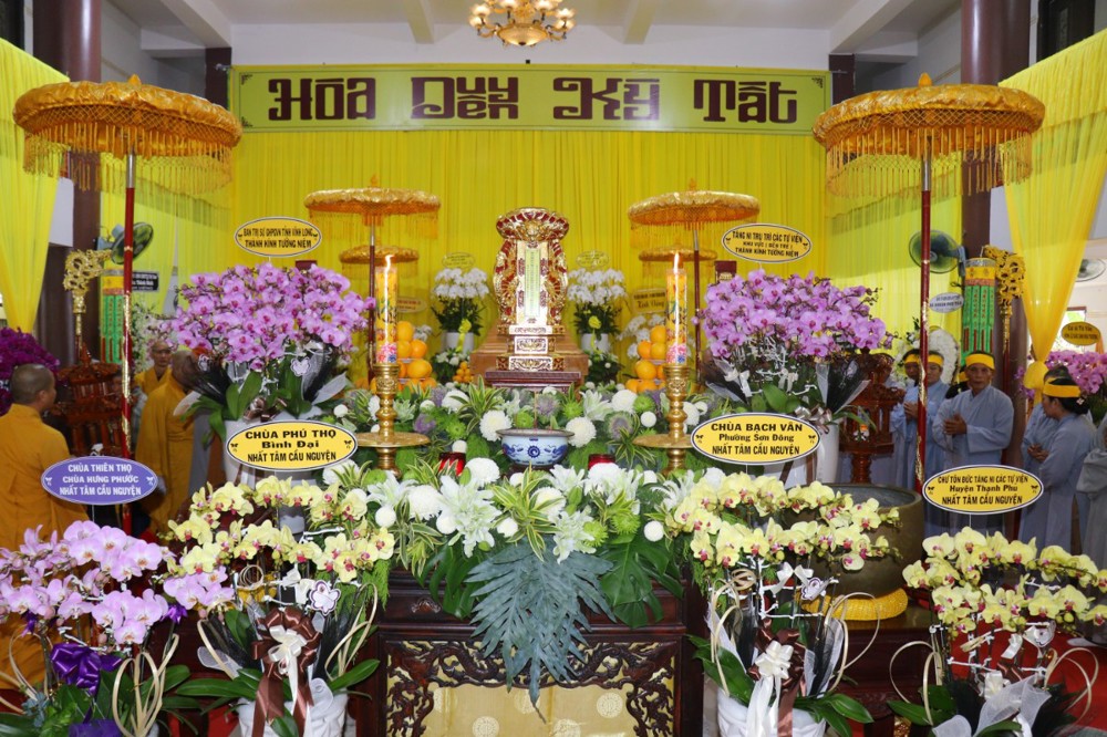 Đồng tham dự với sự hiện diện của chư tôn Trưởng lão Giáo phẩm: HT. Thích Lệ Đức, HT. Thích Lệ Linh - Thành viên HĐCM, Chứng minh BTS GHPGVN tỉnh Vĩnh Long; HT. Thích Lệ Trang -  Phó Chủ tịch HĐTS, Trưởng ban Nghi Lễ GHPGVN, Trưởng BTS GHPGVN TP. HCM; TT. Thích Thanh Phong - Phó Chủ tịch HĐTS, Trưởng ban Kinh tế tài chính GHPGVN, Phó Trưởng ban thường trực BTS GHPGVN TP. HCM; HT. Thích Nhựt Tấn - UV TT HĐTS, Phó ban Kiểm Soát GHPGVN, Chứng minh BTS GHPGVN tỉnh Vĩnh Long; TT. Thích Trì Thọ - UV HĐTS, Phó trưởng ban thường trực BTS GHPGVN tỉnh Vĩnh Long; TT. Thích Thanh Mẫn - Phó BTS tỉnh, Trưởng ban Nghi lễ GHPGVN tỉnh Vĩnh Long; TT. Thích Huệ Đức - Phó BTS tình, Phó thường trực ban Kiểm Soát GHPGVN tỉnh; TT. Thích Tâm Khiết - Phó BTS tỉnh, Chánh thư ký BTS GHPGVN tỉnh Vĩnh Long; ĐĐ. Thích Trí Thuận - Phó BTS tỉnh, Trưởng ban Từ thiện xã Hội GHPGVN tỉnh; Cùng chư Tôn giáo phẩm BTS GHPGVN TP. HCM, Chư tôn đức Tăng Ni ủy viên BTS GHPGVN tỉnh Vĩnh Long, Tăng Ni trụ trì các tự viện và đông đảo Phật tử gần xa trở về tham dự.
