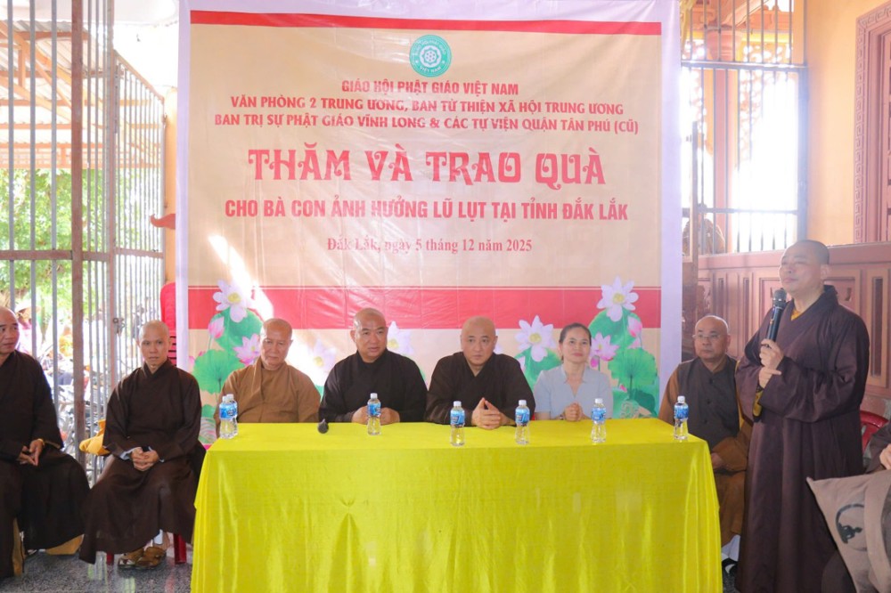 Điểm đến thứ hai trong ngày của đoàn là chùa Cổ Tích Long Khánh (xã Phú Hòa 1, tỉnh Đắk Lắk – Phú Yên cũ), nơi đoàn đã trao 300 phần quà gồm nhu yếu phẩm và 1.500.000 đồng tiền mặt cho mỗi hộ dân. Chuyến đi do Đại đức Thích Trí Thuận – Phó Ban Trị sự, Trưởng Ban Từ thiện xã hội tỉnh – làm Trưởng đoàn, cùng chư Tăng Ni và quý Phật tử mạnh thường quân ủng hộ và tháp tùng.