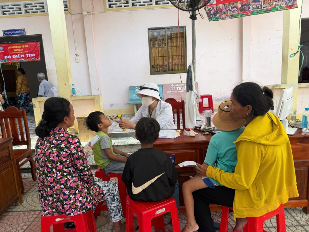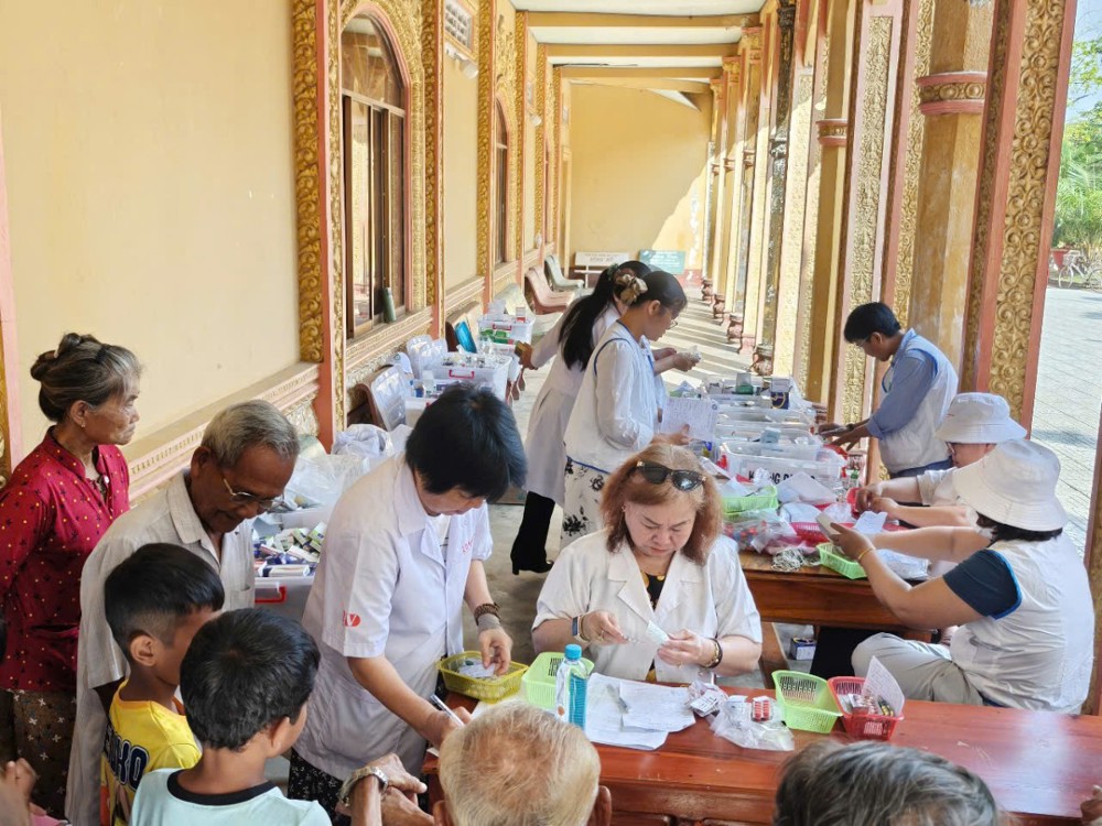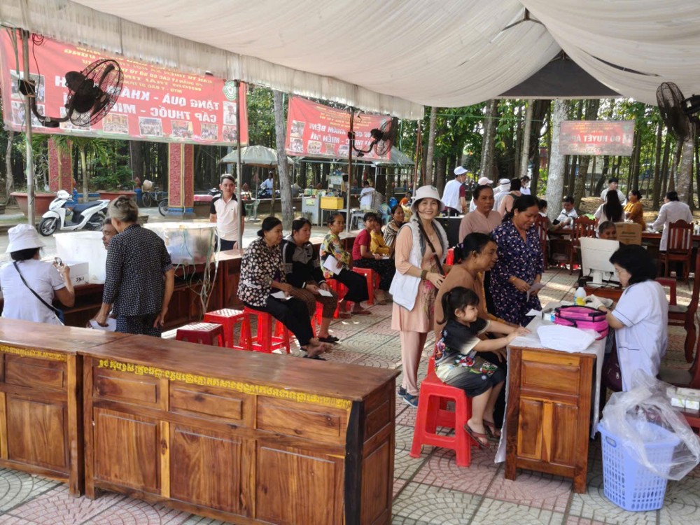 Song song với hoạt động trao quà, đội ngũ y, bác sĩ đã tiến hành khám bệnh, tư vấn sức khỏe và cấp thuốc miễn phí cho người dân địa phương và các xã lân cận. Các hoạt động khám chữa bệnh được triển khai với nhiều chuyên khoa như nội khoa tổng quát, ngoại khoa (trám và nhổ răng), khám mắt và cấp kính, tai mũi họng nội soi, phụ khoa, siêu âm, đo điện tim, thử đường huyết, cùng đông y và vật lý trị liệu, giúp người dân được chăm sóc sức khỏe một cách toàn diện.