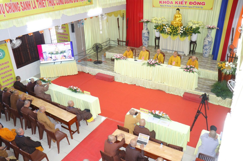 Quang lâm chứng minh buổi pháp đàm có HT. Thích Nhựt Tấn – UV TT HĐTS, Phó ban Kiểm Soát trung ương, Chứng minh BTS GHPGVN tỉnh; TT. Thích Lệ Lạc – UV HĐTS, Phó Trưởng ban Thường trực BTS GHPGVN tỉnh, Phó Ban chỉ đạo Khóa Kiết đông; TT. Thích Trí Thọ - UV HĐTS, Phó Trưởng ban Thường trực BTS GHPGVN, Trưởng ban Tổ chức Khóa Kiết đông; TT. Thích Thanh Mẫn – Phó BTS, Trưởng ban Nghi lễ GHPGVN tỉnh, Phó ban Tổ chức Khóa Kiết đông; TT. Thích Huệ Đức – Phó BTS, Phó Trưởng ban thường trực ban Kiểm Soát GHPGVN tỉnh, Phó ban Tổ chức Khóa Kiết đông; Cùng sự hiện diện của gần 200 hành giả Tăng Ni tham dự Khóa Kiết đông lần III, năm 2025.