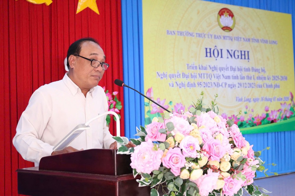 Tại Hội nghị, quý đại biểu được nghe ông Kiên Banh - Phó Chủ tịch UB MTTQVN tỉnh triển khai Nghị quyết Đại hội MTTQVN tỉnh lần thứ I, nhiệm kỳ 2025-2030, được long trọng tổ chức từ ngày 18-19/11/2025, tại Trung tâm Hội nghị tỉnh Trà Vinh (cũ), có 340 đại biểu chính thức. Đại hội là sự kiện chính trị quan trọng, đánh dấu bước phát triển mới của MTTQ Việt Nam tỉnh sau khi kiện toàn tổ chức, đáp ứng yêu cầu nhiệm vụ trong giai đoạn mới. Với tinh thần “Đoàn kết - Dân chủ - Trách nhiệm - Đổi mới - Phát triển”, Đại hội đã hoàn thành toàn bộ nội dung, chương trình đề ra. Đại hội thể hiện rõ ý chí, quyết tâm và khát vọng xây dựng tỉnh Vĩnh Long phát triển nhanh, bền vững trong kỷ nguyên mới; củng cố, tăng cường khối đại đoàn kết toàn dân tộc.