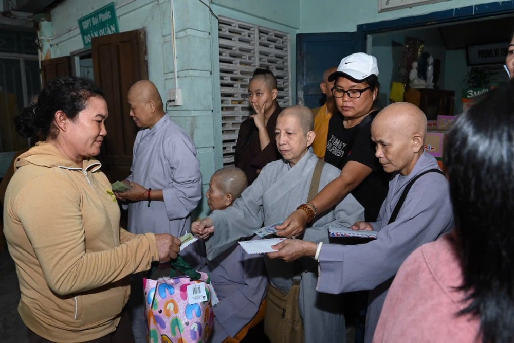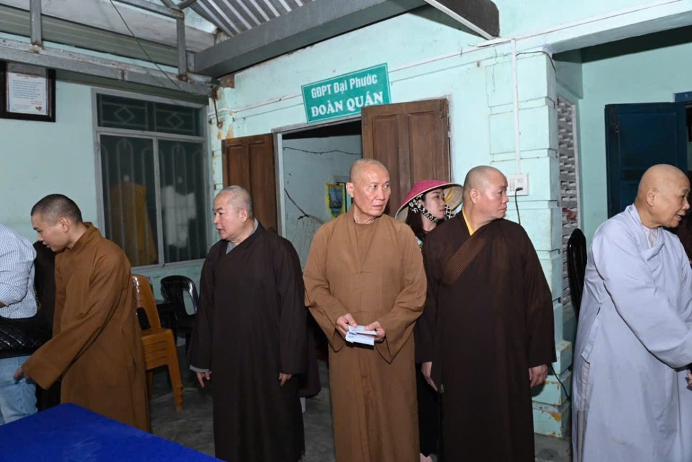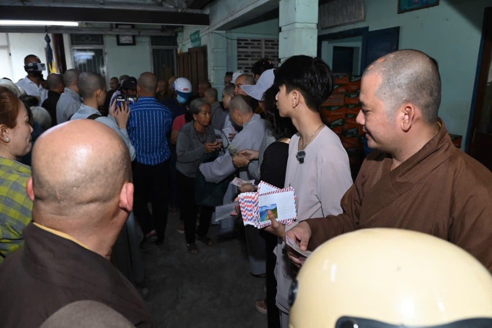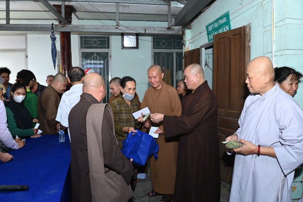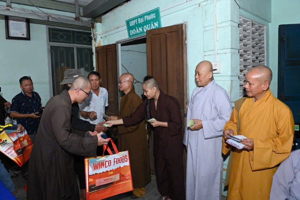 Những phần quà nhỏ bé ấy, dẫu không thể so với biển trời mất mát mà bà con đã trải qua, nhưng chứa đựng tất cả tấm lòng của chư Tăng Ni và những người con Phật, như ánh lửa được thắp lên giữa mùa bão lũ, để sưởi ấm những phận đời còn đang run rẩy giữa gió mưa. Ngoài ra đoàn còn hộ trợ thêm 20 phần bì thư cho các cụ già neo đơn, mỗi cụ 1.000.000 đồng.