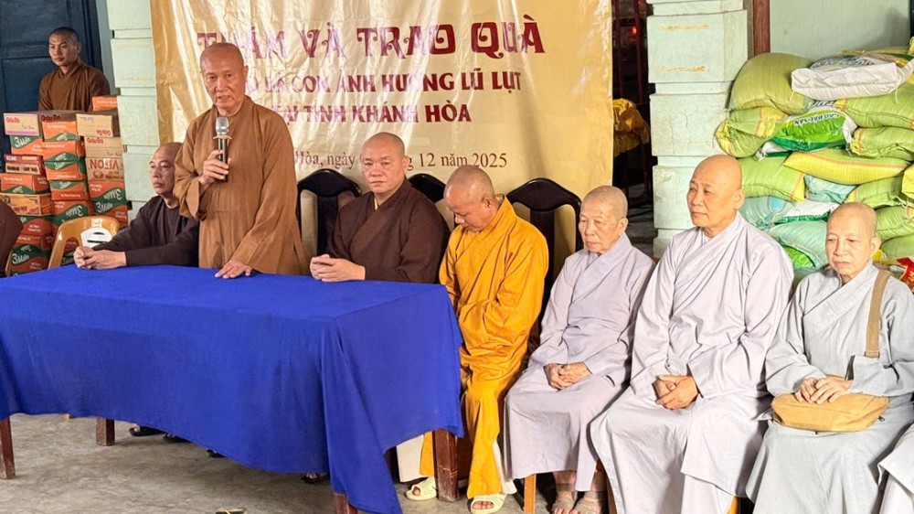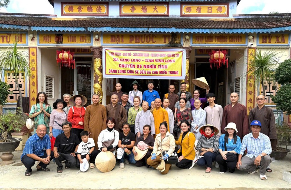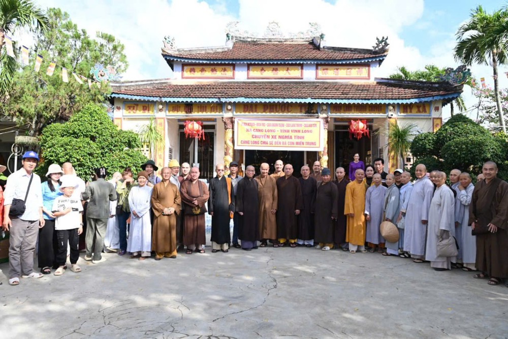 PSO - Sáng ngày 06/12/2025, trong không gian yên bình của chùa Đại Phước (xã Diên Điền, tỉnh Khánh Hòa), Đoàn Từ thiện Xã hội GHPGVN tỉnh Vĩnh Long, chư Tôn đức Tăng Ni trụ trì các tự viện cùng quý Phật tử, mạnh thường quân đã đặt những bước chân cuối của hành trình từ bi – để lắng nghe, để sẻ chia và để nâng đỡ những phận người đang gồng mình sau cơn lũ dữ.