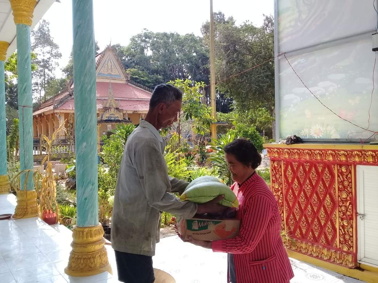 PSO - Sáng ngày 7/4/2020 (nhằm ngày 15/3 năm Canh Tý), trên tinh thần tương thân tương ái, ĐĐ. Thạch Xa Rốt - Ủy viên BTS GHPGVN tỉnh Vĩnh Long, Chánh văn phòng Hội ĐKSSYN tỉnh, trụ trì chùa Gò Xoài (ấp Sóc Ruộng, xã Tân Mỹ, huyện Trà Ôn, tỉnh Vĩnh Long) đã trao tặng 100 phần quà cho các hộ gia đình Khmer có hoàn cảnh khó khăn hân hoan đón mừng tết Chôl Chnăm Thmây năm 2020.