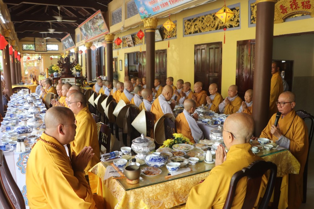 Với tấm lòng hiếu kính sâu xa, môn đồ pháp quyến đã cung thỉnh chư Tôn giáo phẩm quang lâm trai đường, tác bạch cúng dường trai Tăng đến chư Tôn đức Tăng Ni hiện tiền, dâng trọn tâm thành hướng về Giác linh Ân sư và nguyện tiếp nối chí nguyện hoằng pháp, giữ gìn mạng mạch Phật pháp nơi thế gian.
