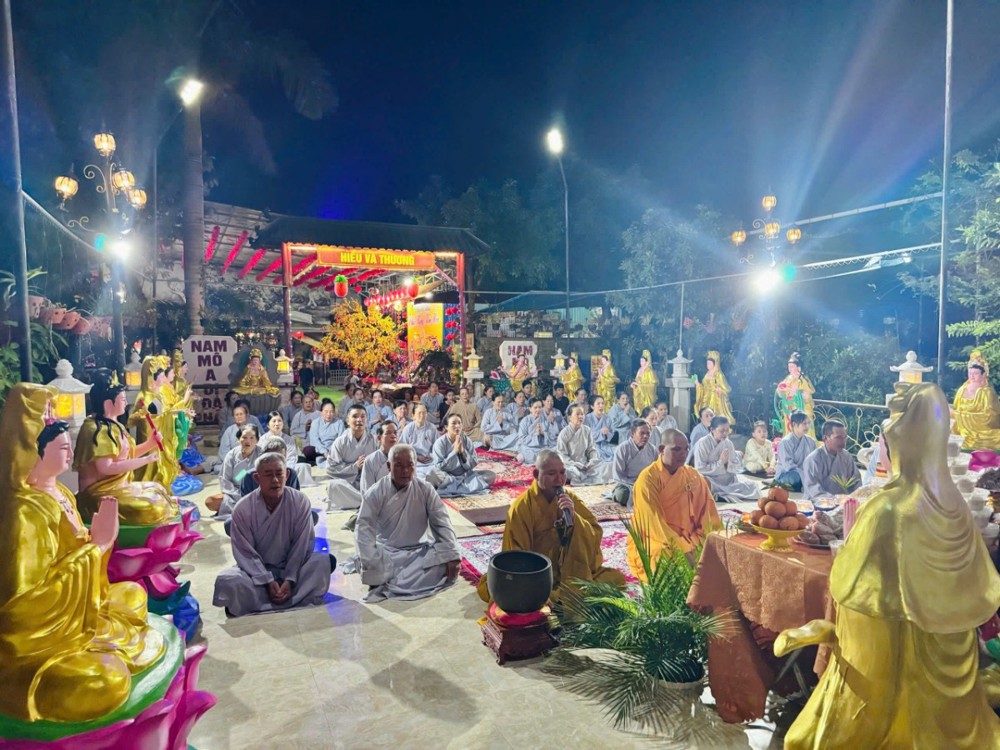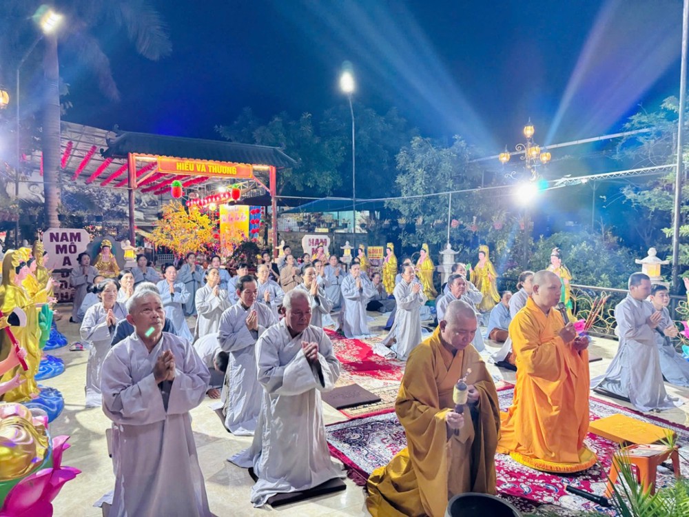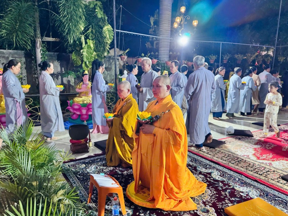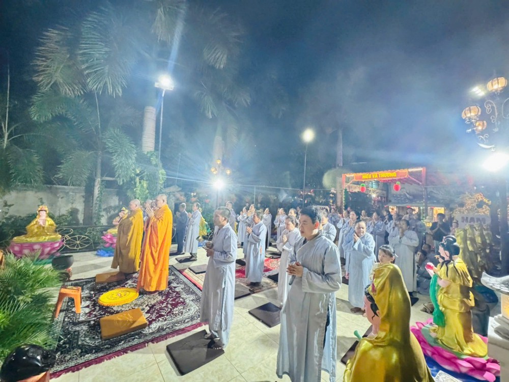 Trong không khí linh thiêng ấy, nghi thức khai kinh được cử hành trang trọng, mở ra cánh cửa chánh pháp, giúp hàng Phật tử thấm nhuần giáo lý từ bi, trí tuệ. Hình ảnh đại chúng đồng thanh tụng niệm, thân tâm hợp nhất đã tạo nên một đạo tràng thanh tịnh, trang nghiêm, biểu trưng cho sự hòa hợp và tinh tấn tu học.