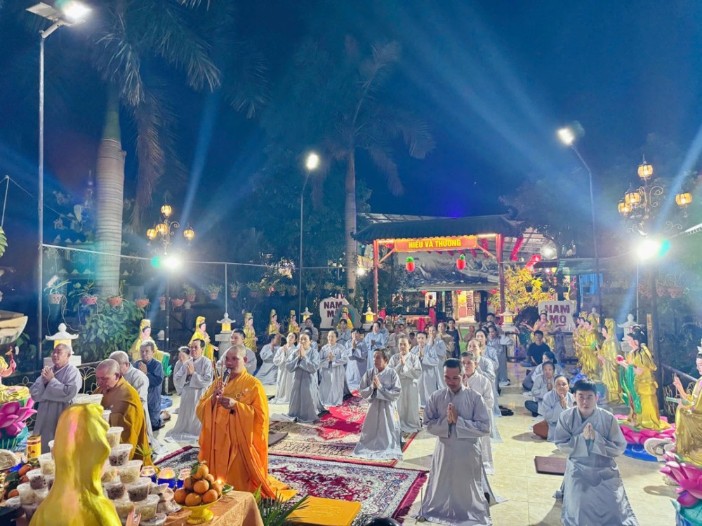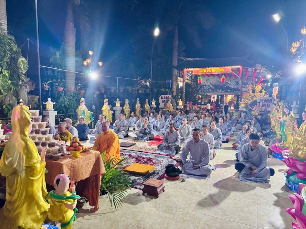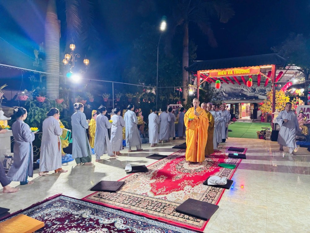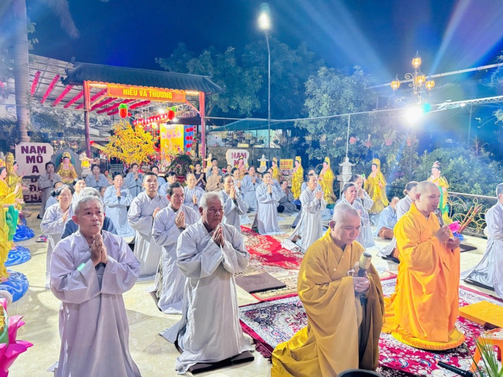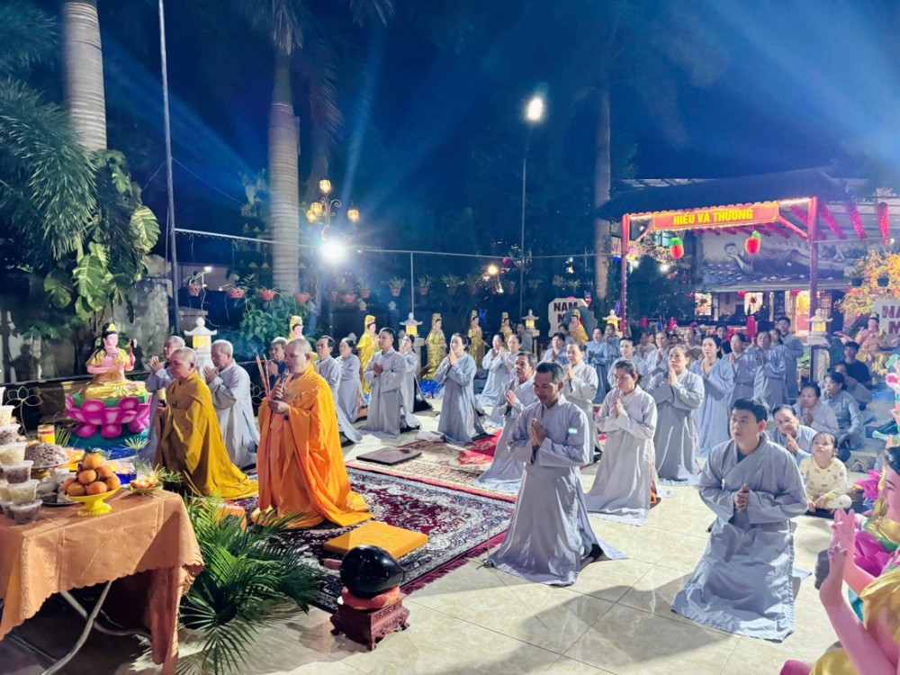 Trong không khí linh thiêng ấy, nghi thức khai kinh được cử hành trang trọng, mở ra cánh cửa chánh pháp, giúp hàng Phật tử thấm nhuần giáo lý từ bi, trí tuệ. Hình ảnh đại chúng đồng thanh tụng niệm, thân tâm hợp nhất đã tạo nên một đạo tràng thanh tịnh, trang nghiêm, biểu trưng cho sự hòa hợp và tinh tấn tu học.