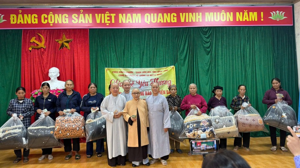 PSO- Thực hiện hạnh nguyện từ bi của người con Phật, nhằm hỗ trợ đồng bào vượt qua khó khăn trong mùa mưa lũ năm 2025, trong ba ngày 28, 29 và 30/10/2025, đoàn từ thiện ba chùa Khánh Phước, Liên Hoa và An Thành do Ni trưởng Thích Nữ Như Giáo, viện chủ chùa Khánh Phước (tỉnh Vĩnh Long), làm Trưởng đoàn đã thực hiện chuyến từ thiện tặng 300 phần quà Từ Bi cho đồng bào ba xã Cường Lợi, Trần Phú và Duy Xuyên với tổng kinh phí gần 400 triệu đồng.