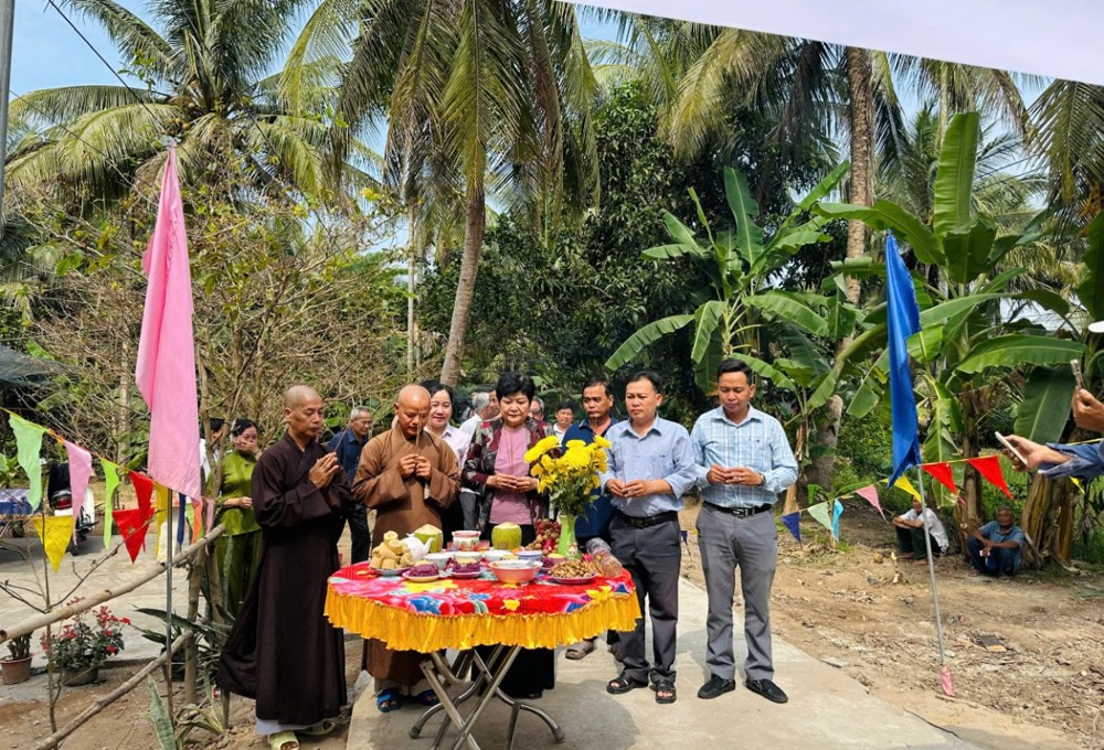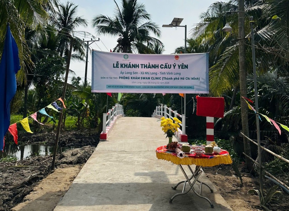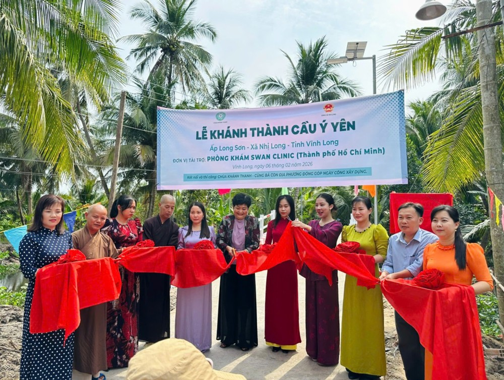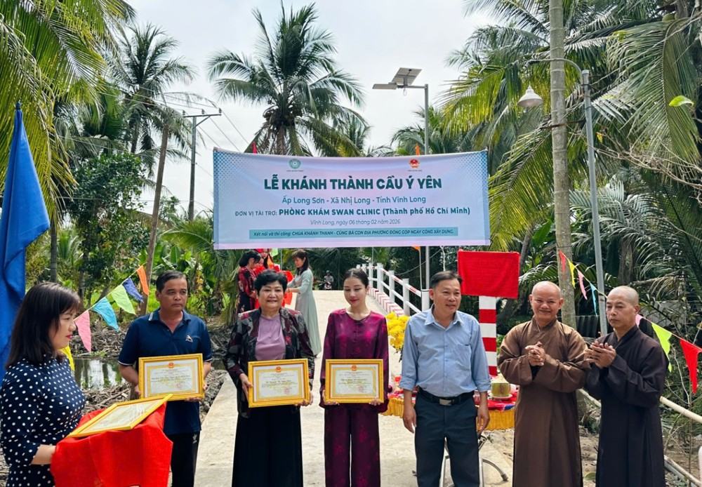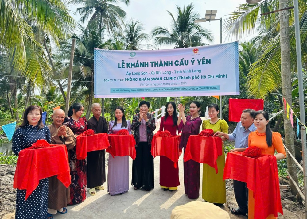 PSO - Trong không khí hân hoan những ngày cận Tết cổ truyền dân tộc, ngày 06/02/2026 (nhằm ngày 19/12/năm Ất Tỵ), TT. Thích Minh Độ - Phó BTS GHPGVN tỉnh Vĩnh Long, Trụ trì Chùa Khánh Thạnh (xã Nhị Long, tỉnh Vĩnh Long), đã phối hợp cùng đơn vị tài trợ và chính quyền địa phương trang nghiêm tổ chức Lễ khánh thành cầu giao thông nông thôn tại ấp Long Sơn, xã Nhị Long, tỉnh Vĩnh Long, góp phần mang lại điều kiện đi lại thuận lợi và an toàn cho bà con nhân dân.
