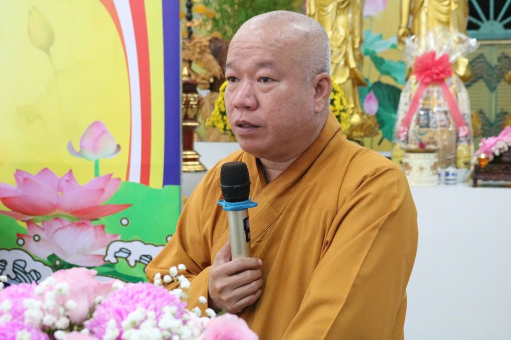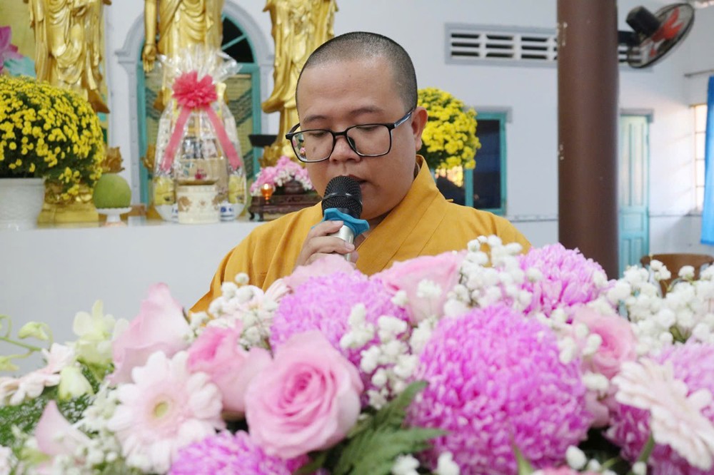 Tại buổi lễ, sau phần nghi thức; HT.Thích Huệ Pháp - Ủy viên HĐTS, Phó Trưởng BTS GHPGVN tỉnh phát biểu diễn văn khai mạc chào mừng.
