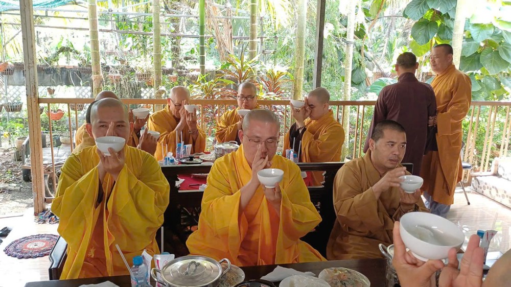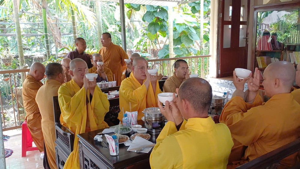 Tại trai đường, Thượng tọa Thích Huệ Hoàn thay lời cho môn đồ pháp quyến dâng lời tác bạch cúng dường, bày tỏ niềm tri ân sâu sắc đối với ân đức giáo dưỡng của cố Thượng tọa. Trong lời tác bạch, hình ảnh một bậc Thầy mẫu mực, giản dị nhưng đầy tâm huyết với đạo pháp được khắc họa rõ nét qua từng chặng đường tu học và hoằng pháp.