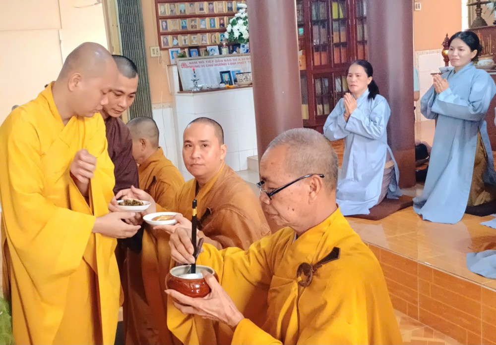 Tại buổi lễ, ĐĐ. Thích Thiện Phẩm - Trụ trì chùa Như Pháp, cung kính đối trước chư Tôn đức Giáo phẩm dâng lời tác bạch tri ân Sư Ông và Ân sư, bày tỏ lòng tưởng nhớ sâu sắc đến công đức giáo dưỡng và hạnh nguyện hoằng hóa của các Ngài. Trong không khí trang nghiêm và thấm đượm đạo tình, Đại đức xúc động ôn lại công hạnh, đạo nghiệp của Sư Ông và Ân sư, những bậc Thầy khả kính đã trọn đời vì Đạo pháp, vì sự trưởng thành của hàng đệ tử.