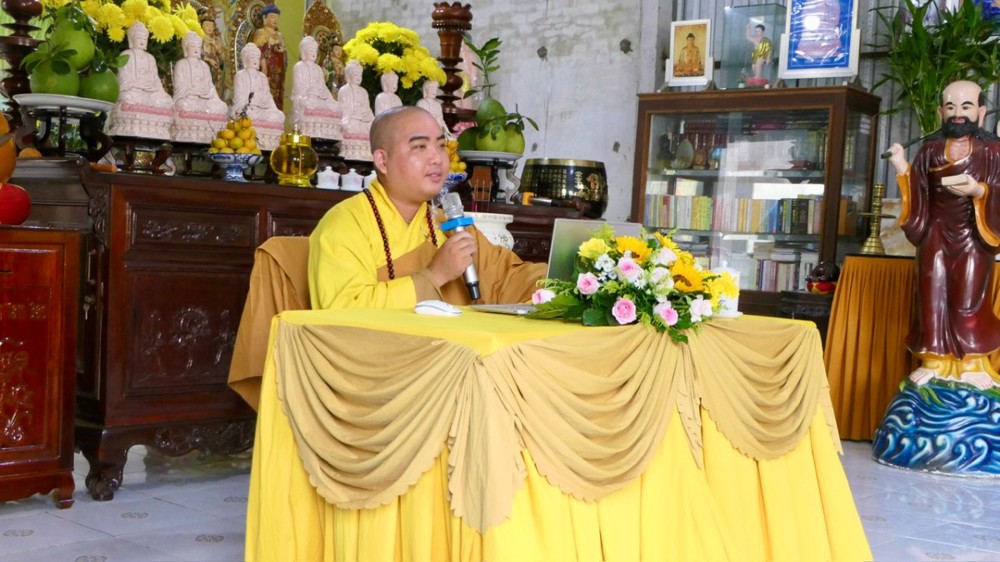 Niềm hoan hỷ của đạo tràng được nhân lên khi Đại đức Thích Thiên Bình – Ủy viên Thường trực Ban Hướng dẫn Phật tử GHPGVN tỉnh Đồng Tháp, Ủy viên Ban Hoằng pháp GHPGVN tỉnh Đồng Tháp, Phó Thư ký Ban Đại diện Phật giáo khu vực 8 tỉnh Đồng Tháp – quang lâm và chia sẻ một thời pháp thoại đầy ý nghĩa.