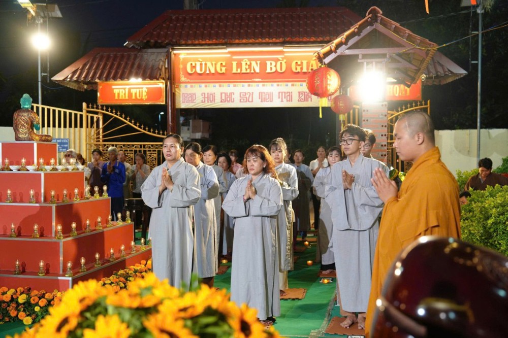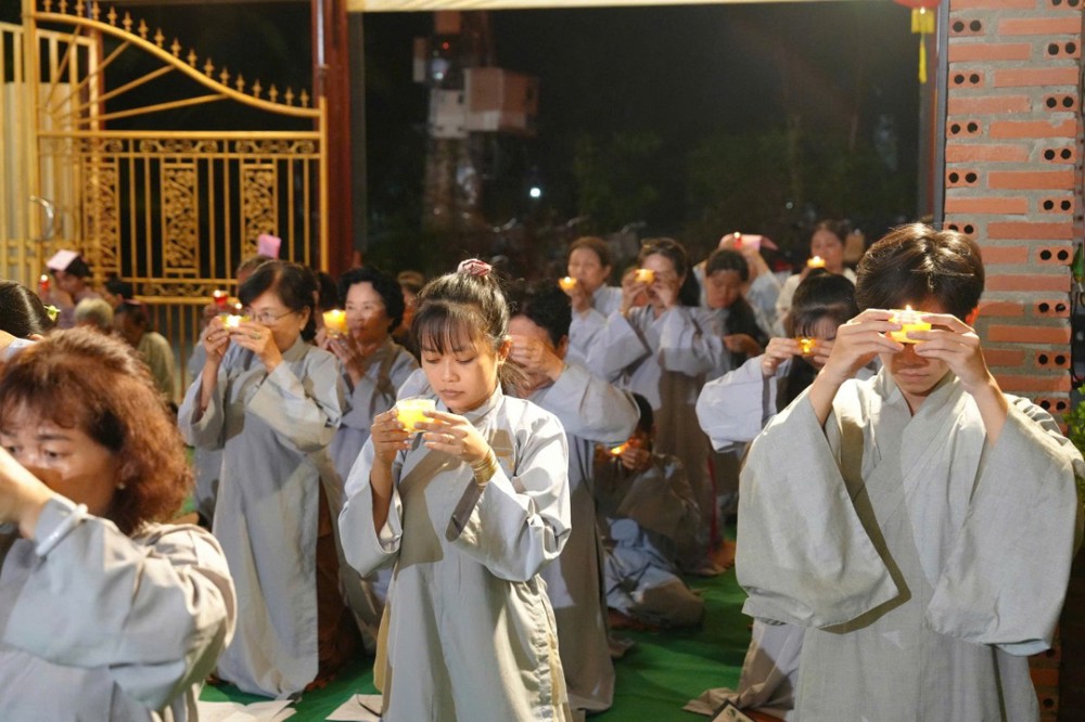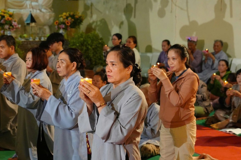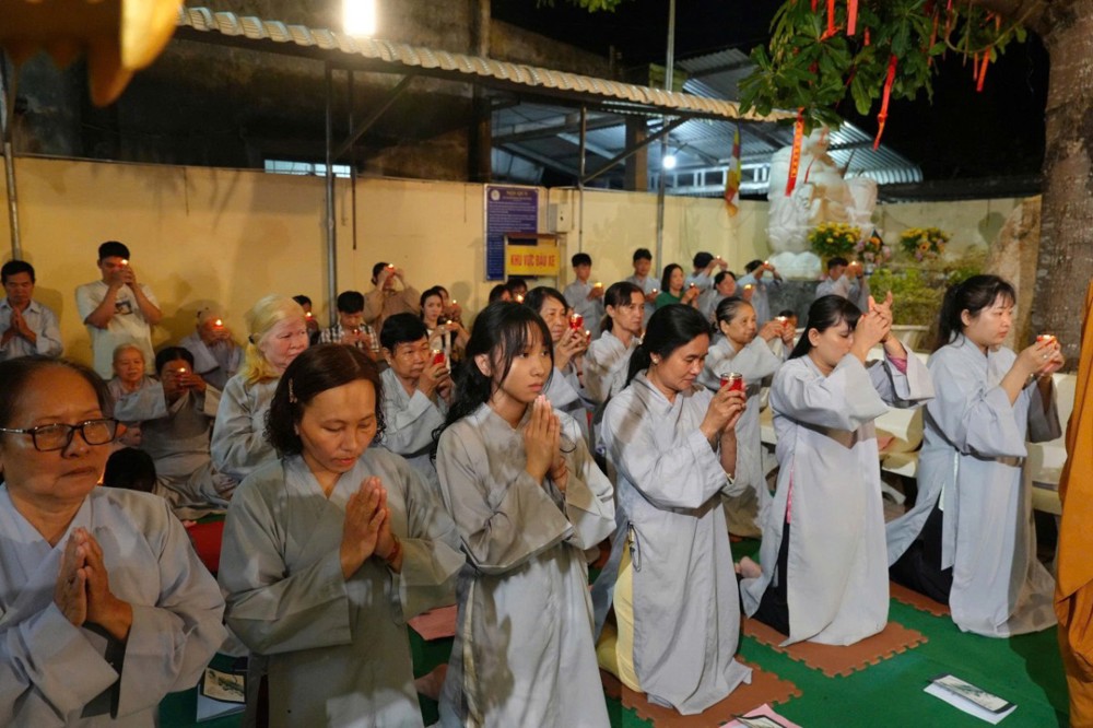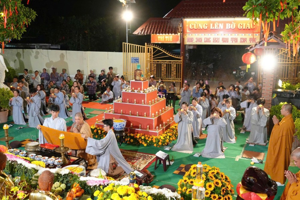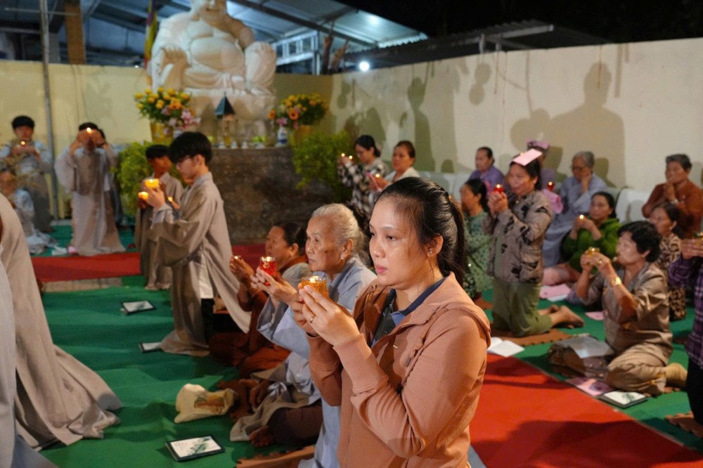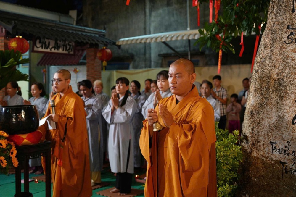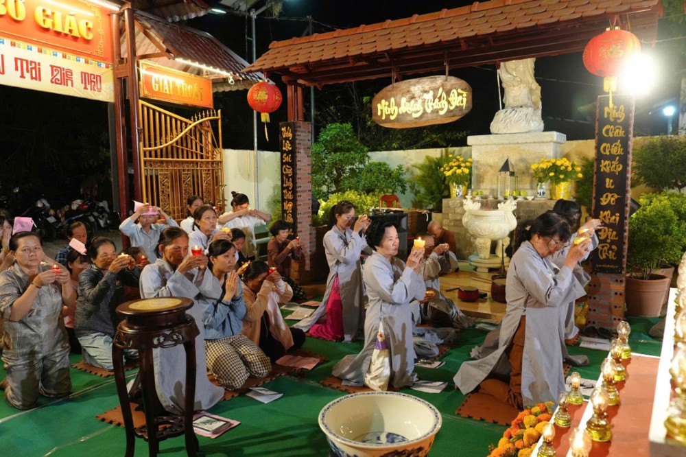 Tiếp đó, toàn thể đại chúng đồng tụng kinh Dược Sư, trì danh hiệu Đức Phật Dược Sư, nhất tâm hướng về mười hai đại nguyện cứu khổ ban vui. Nghi thức dâng đăng được cử hành trang trọng, những ngọn đèn được thắp sáng biểu trưng cho trí nguyện và ước mong tiêu trừ nghiệp chướng, tăng trưởng phúc lành. Phần tuyên sớ cầu an diễn ra trong không khí lắng đọng, gửi gắm tâm nguyện của bá tánh về một năm mới hanh thông, gia đạo an hòa, mọi sự cát tường.