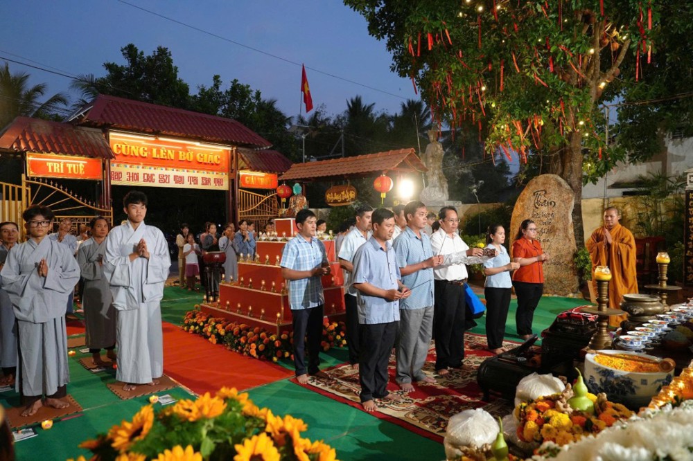 Mở đầu đại lễ là nghi thức niêm hương bạch Phật. Đặc biệt, phần niêm hương của lãnh đạo chính quyền địa phương thể hiện tinh thần tôn trọng tín ngưỡng và sự đồng hành cùng Phật giáo trong việc vun bồi đời sống đạo đức, hướng thiện nơi cộng đồng. Trước tôn tượng Đức Dược Sư Lưu Ly Quang Như Lai, chư vị thành kính dâng hương, nguyện cầu đất nước vững bền, xã tắc hưng thịnh, nhân dân bình an.