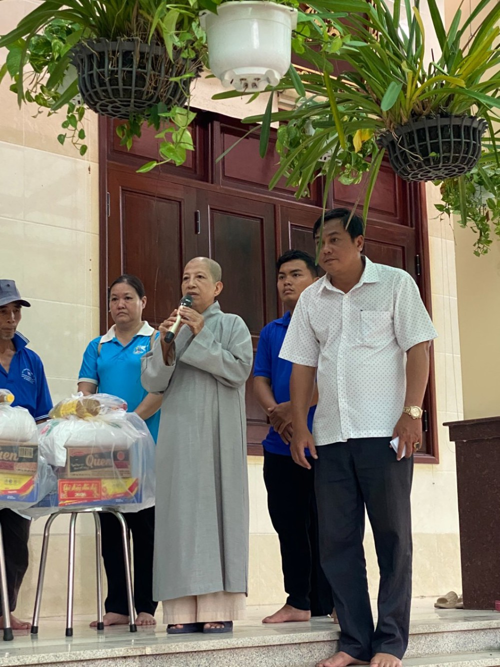 Buổi phát quà diễn ra trong không khí trang nghiêm, ấm áp và thấm đượm tinh thần từ bi của đạo Phật. Đến tham dự chương trình có ông Nguyễn Hoàng Anh – Phó Chủ tịch Thường trực Ủy ban MTTQVN xã, cùng đại diện chính quyền địa phương và đông đảo bà con nhân dân.