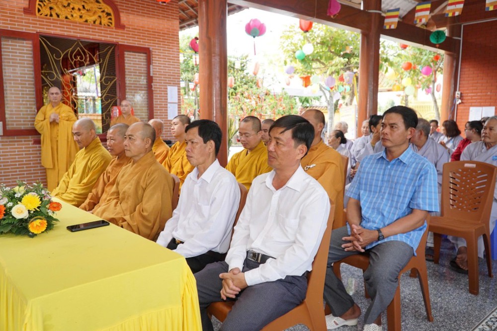 Chứng minh và tham dự buổi lễ có: HT.Thích Lệ Đức, Thành viên HĐCM, Chứng minh BTS GHPGVN tỉnh; HT.Thích Lệ Linh, Thành viên HĐCM; HT.Thích Nhựt Tấn, Ủy viên Thường trực HĐTS; HT.Thích Chơn Không, Phó Trưởng ban HDPT Trung ương; HT.Thích Minh Hiền, Trưởng tông phong Tổ Sư Thiền; HT.Thích Trí Minh, Ủy viên HĐTS, Phó Ban Thường trực BTS GHPGVN tỉnh; TT.Thích Lệ Lạc, Phó ban Thường trực BTS GHPGVN tỉnh; TT.Thích Trí Thọ, Phó ban Thường trực BTS GHPGVN tỉnh; TT.Thích Tâm Kiết, Phó Ban kiêm Chánh Thư ký BTS; TT.Thích Trung San, Trưởng ban Giáo dục Phật giáo tỉnh; ĐĐ.Thích Trí Thuận, Phó BTS kiêm Trưởng ban Từ thiện xã hội Phật giáo tỉnh; NS.Thích Nữ Như Nguyệt, Trưởng ban Kinh tế - Tài chính tỉnh; cùng chư Tăng Ni và đại diện chính quyền địa phương.