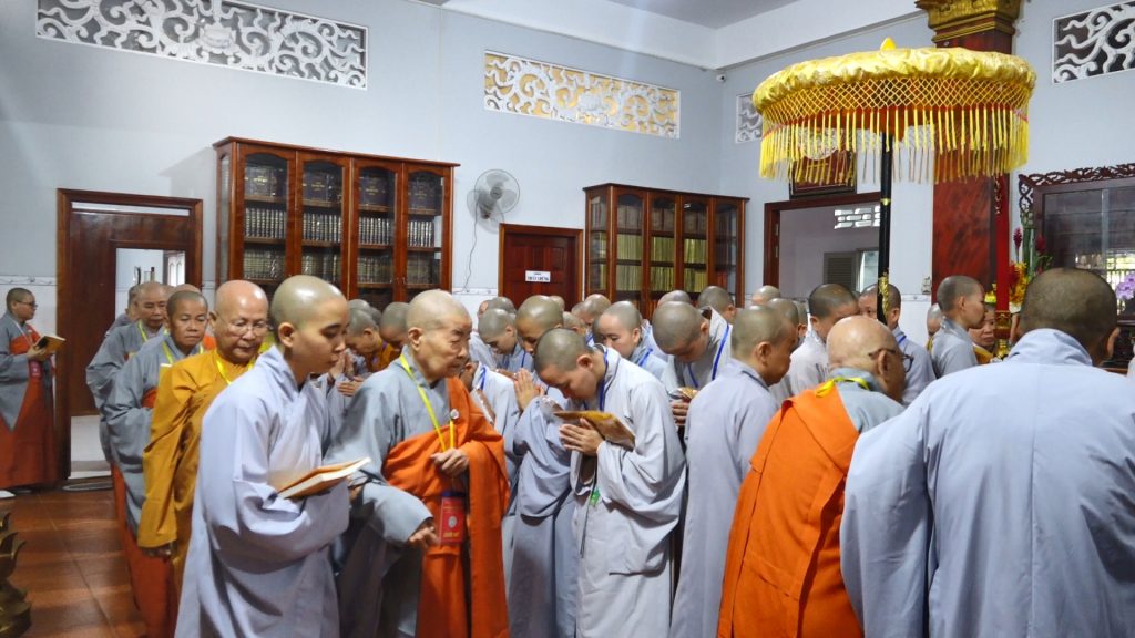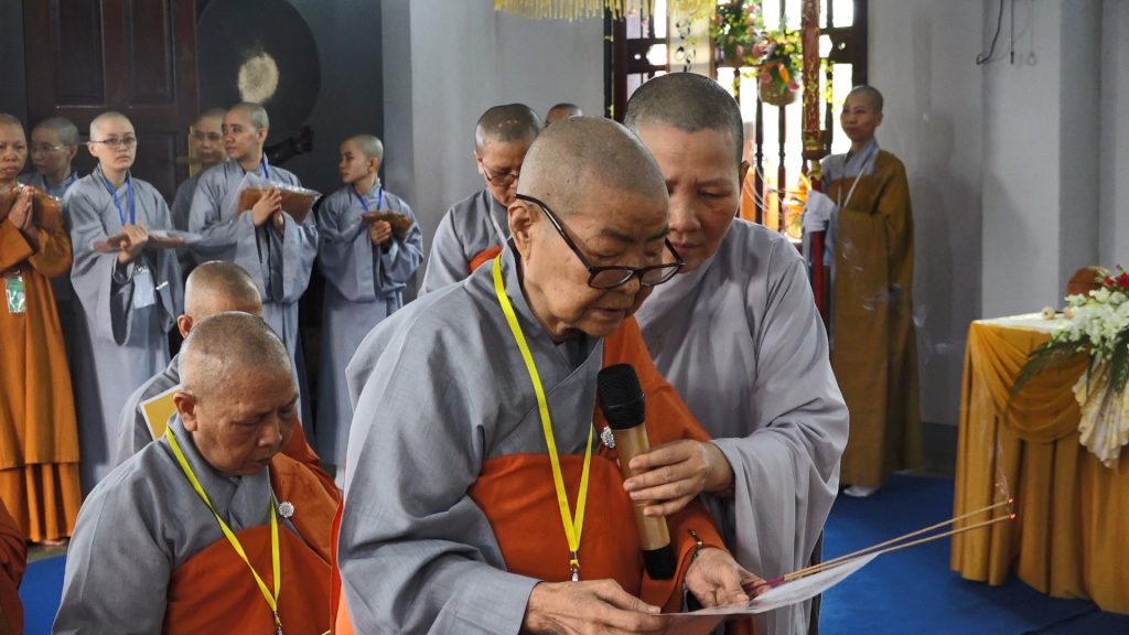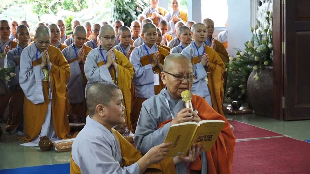 Đầu giờ chiều ban tổ chức đã cung thỉnh Hội đồng Thập sư Ni truyền trao Tỳ-kheo giới tới 106 giới tử thọ Tỳ kheo Ni.