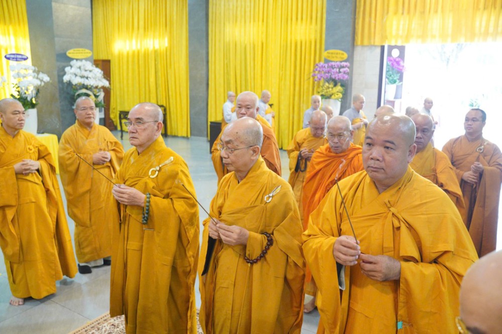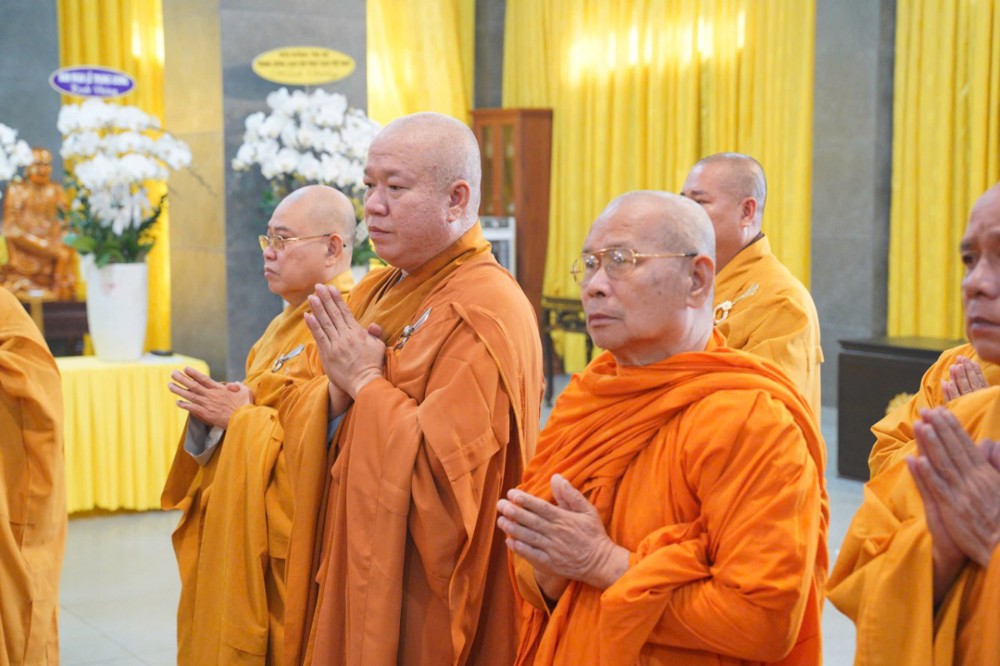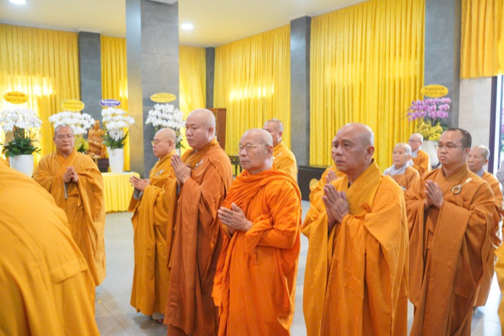 Trong không khí trang nghiêm và xúc động, chư Tôn đức Ban Trị sự GHPGVN tỉnh Vĩnh Long đã dâng hương đảnh lễ Giác linh, thành kính tưởng niệm và bày tỏ lòng tri ân sâu sắc đối với hành trạng tu tập, hoằng pháp và hành đạo cao quý của Trưởng lão Hòa thượng - Bậc long tượng của Tăng già, người trọn đời phụng sự Đạo pháp và Dân tộc.