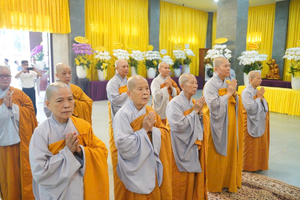 Tháp tùng cùng đoàn có TT. Thích Lệ Lạc - Ủy viên HĐTS, Phó Trưởng ban Thường trực BTS GHPGVN tỉnh Vĩnh Long (đảm trách khu vực Vĩnh Long); TT. Thích Trí Thọ – Ủy viên HĐTS, Phó Trưởng ban Thường trực BTS GHPGVN tỉnh Vĩnh Long (đảm trách khu vực Bến Tre); TT. Thích Tâm Khiết - Phó Trưởng BTS kiêm Chánh Thư ký BTS GHPGVN tỉnh Vĩnh Long; TT. Thích Thanh Mẫn - Phó trưởng BTS tỉnh, Trưởng ban Nghi Lễ GHPGVN tỉnh; TT. Thích Trung San – Ủy viên TT BTS tỉnh, Trưởng ban Giáo dục Phật giáo tỉnh; NT. Thích nữ Như Chơn – Chứng minh Phân ban Ni giới tỉnh; NS. Thích nữ Như Nguyệt – Phó Thư ký, Trưởng ban Kinh tế tài chính GHPGVN tỉnh; NS. Thích nữ Như Uyên – Ủy viên TT BTS tỉnh, Phó Thường trực Phân ban Ni giới tỉnh; Cùng Chư Tôn đức Tăng Ni ủy viên BTS tỉnh Vĩnh Long nhất tâm đồng kính đảnh lễ giác linh cố Trưởng lão Hòa thượng.