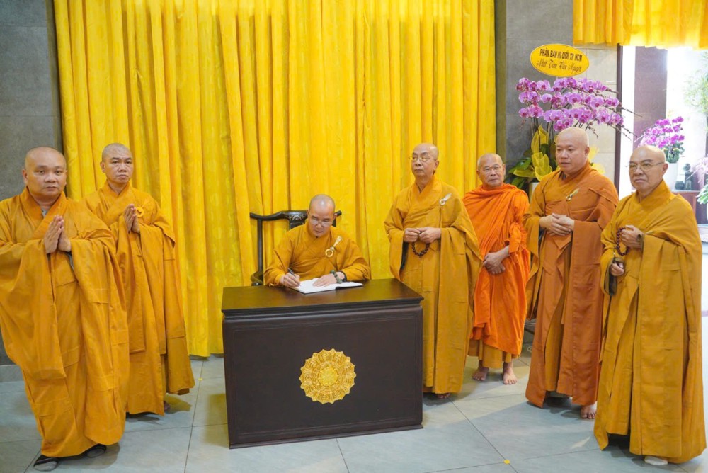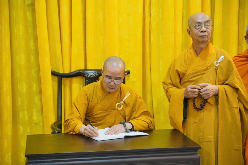 Thay mặt đoàn, TT. Thích Lệ Lạc – Phó Trưởng BTS GHPGVN tỉnh Vĩnh Long – đã thành kính ký tên và ghi sổ tang, thể hiện lòng tưởng niệm sâu sắc cùng sự tri ân vô hạn đối với công đức và sự nghiệp hoằng dương Chánh pháp của cố Hòa thượng.