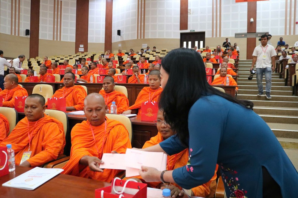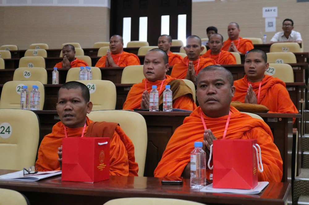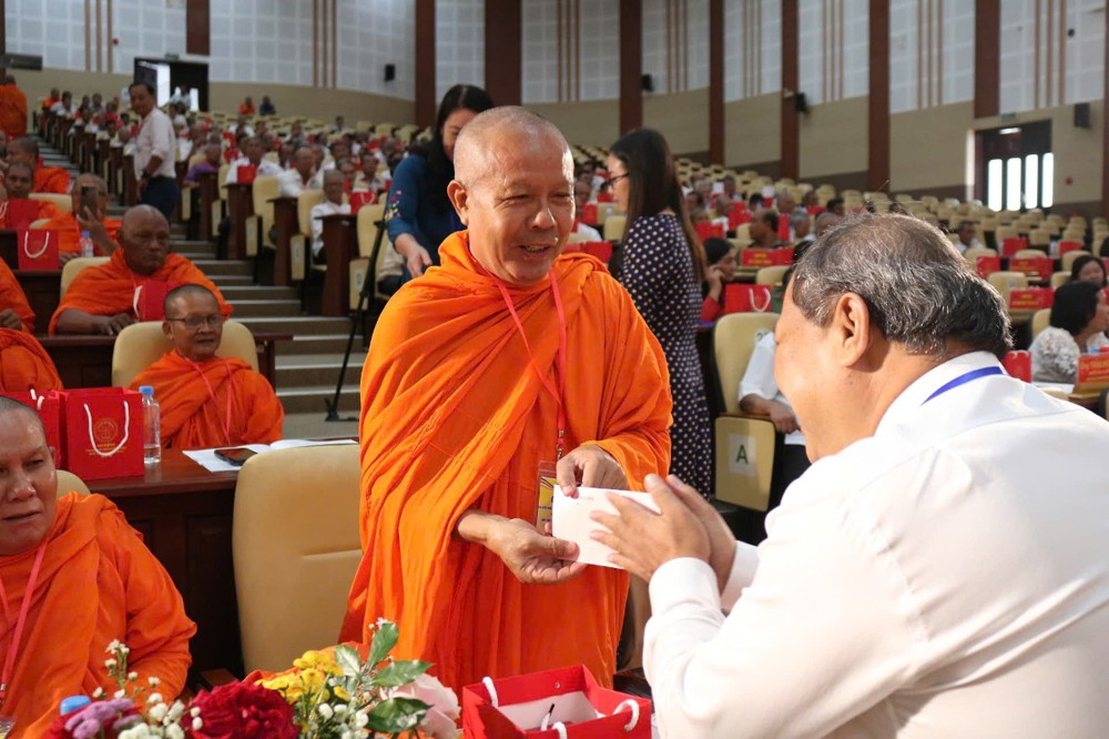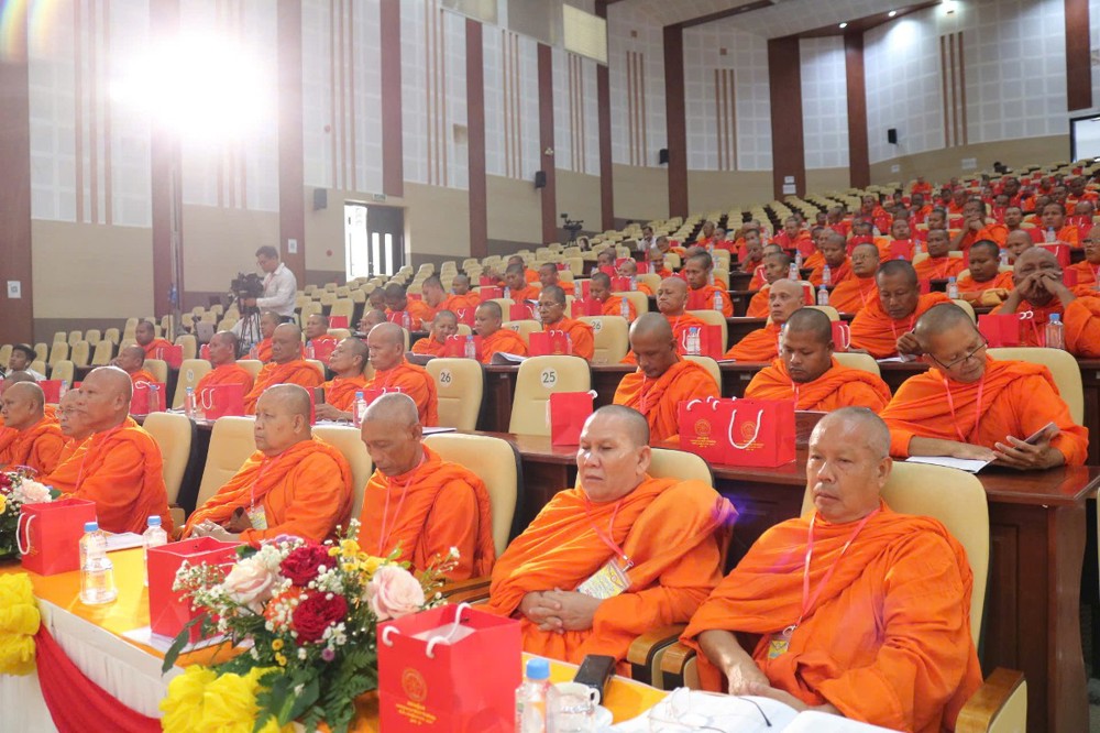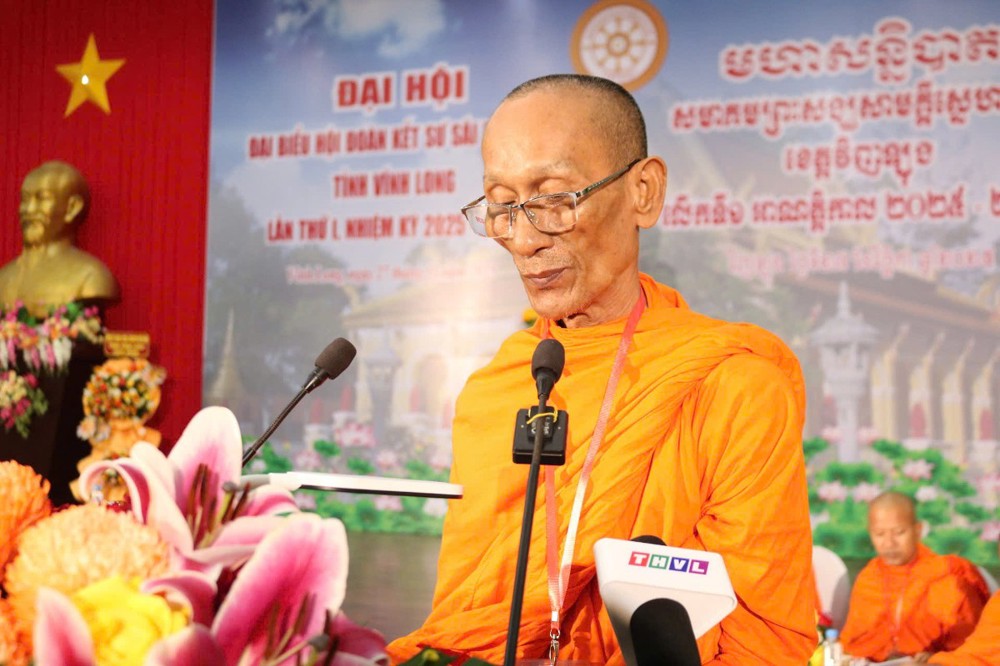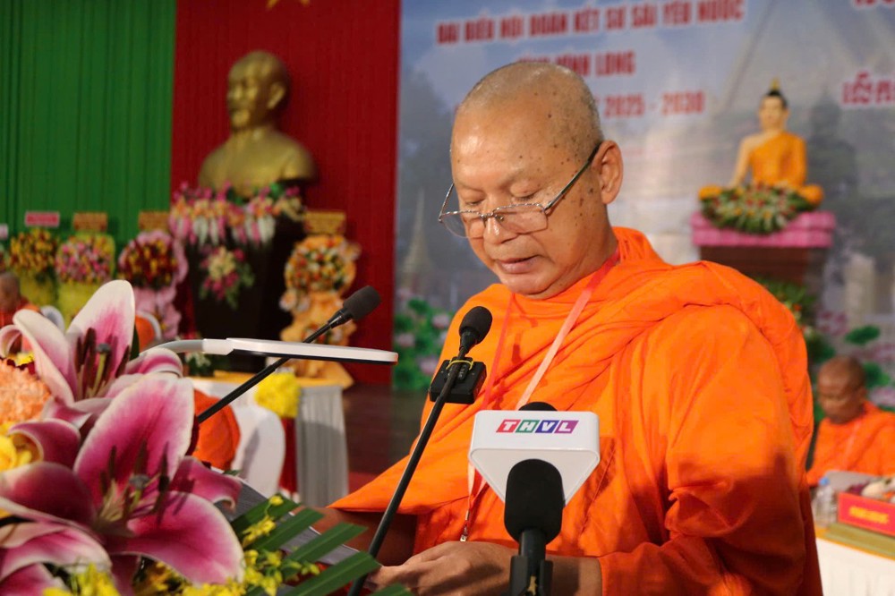 Tiếp đến, TT.Sơn Ngọc Huynh - Phó Chủ tịch Thường trực Hội ĐKSSYN tỉnh báo cáo tổng kết công tác hoạt động năm 2023-2025. Về tu học - hành đạo, sau sáp nhập toàn tỉnh có 156 chùa Phật giáo Nam tông Khmer, với tổng số chư Tăng là 3.414 vị đang tu học. Trong đó, có 22 vị Hòa thượng; 72 vị Thượng tọa; 1.682 vị Tỳ kheo; 1.638 vị Sa di; 154 vị Trụ trì; 156 vị Phó Trụ trì; 283 vị Achar và 4.765 Thành viên Ban quản trị. Trong nhiệm kỳ 2023-2025, Hội đã thực hiện công tác TTXH như: Chăm sóc sức khỏe cho người nghèo, nuôi dưỡng người gìa neo đơn, giúp gia đình đang gặp khó khăn, ủng hộ lớp học tình thương, quỹ khuyến học, khuyến tài, phát quà cho người nghèo, xây dựng cây cầu, đường nông thôn, ủng hộ quỹ vì người nghèo,... với tổng kinh phí trên 139 tỷ đồng.