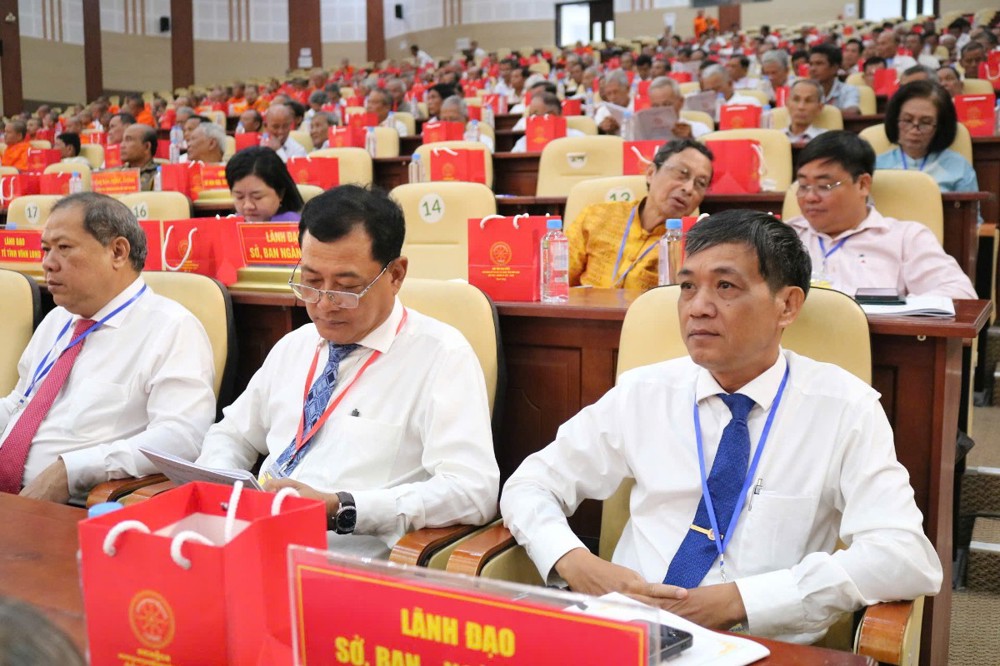 Đại diện lãnh đạo tỉnh có sự hiện diện của ông Kim Ngọc Thái - Phó Bí thư Tỉnh ủy, Chủ tịch UB MTTQVN tỉnh; ông Kim Rương - Ủy viên Ban Thường vụ Tỉnh ủy, Phó Chủ tịch HĐND tỉnh; bà Nguyễn Thị Bé Mười - Tỉnh ủy viên, Phó Chủ tịch UBND tỉnh; ông Kiên Banh - Phó Chủ tịch UB MTTQVN tỉnh; đại diện các vị nguyên lãnh đạo Đảng nhà nước; lãnh đạo các sở ban ngành tỉnh cùng 320 đại biểu chính thức tham dự.