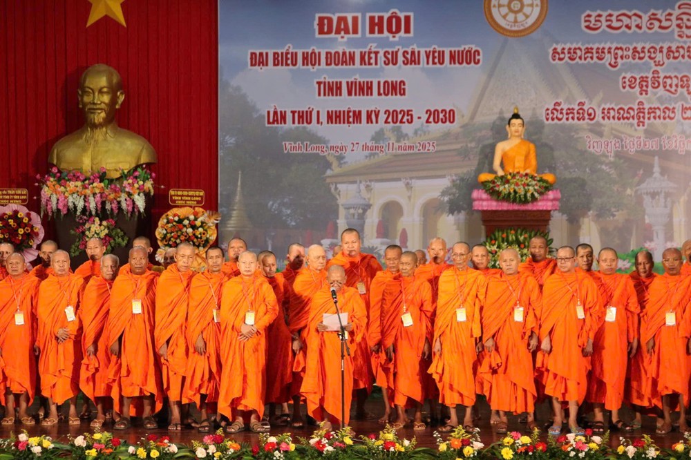 PSO - Sáng ngày 27/11/2025 (nhằm ngày 8/10 năm Ất Tỵ) đã long trọng diễn ra Đại hội Đại biểu Hội Đoàn kết Sư sãi Yêu nước (Hội ĐKSSYN) tỉnh Vĩnh Long lần thứ I, nhiệm kỳ 2025-2030, tại Trung tâm Hội nghị tỉnh Trà Vinh cũ (số 125, đường Võ Nguyên Giáp, P.Nguyệt Hoá, tỉnh Vĩnh Long).