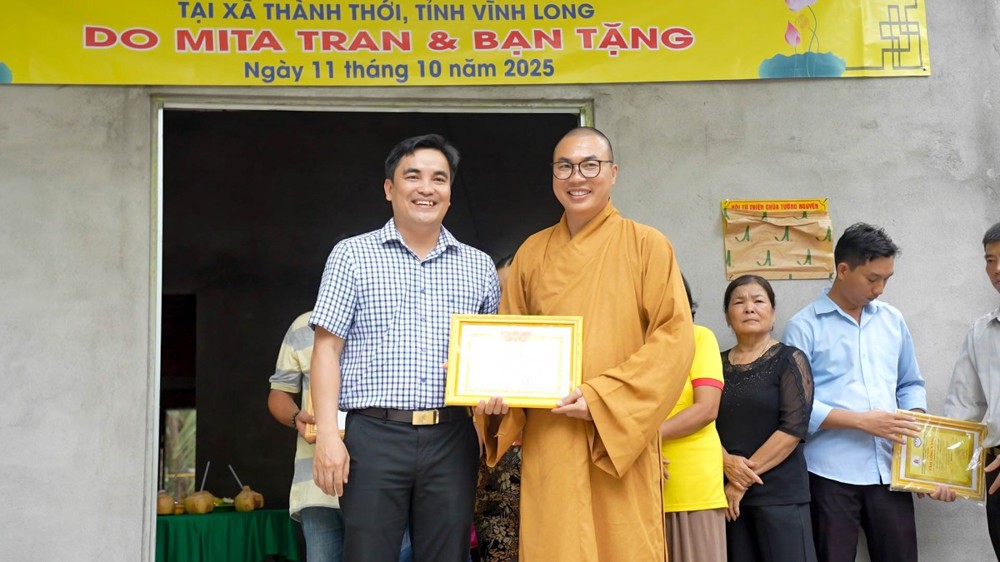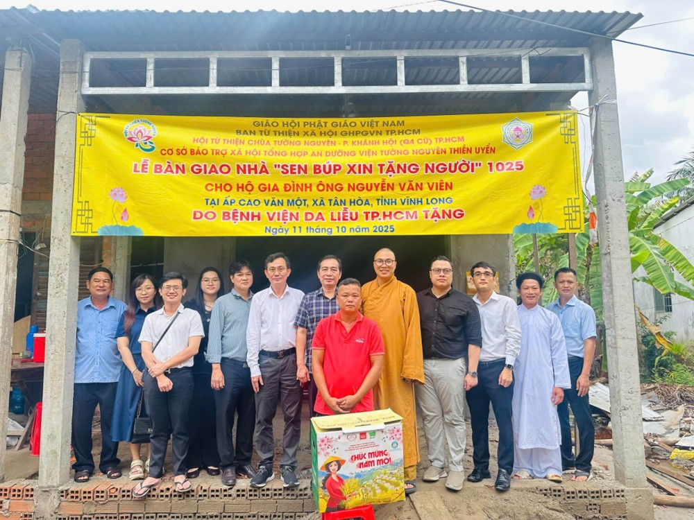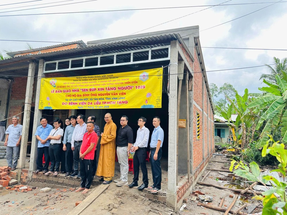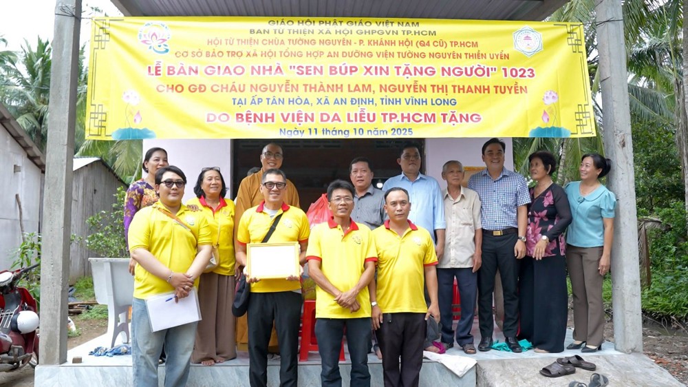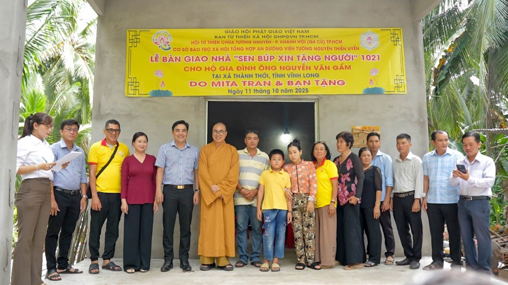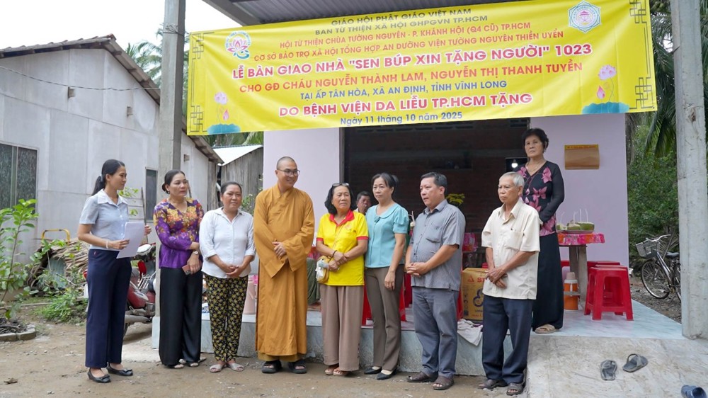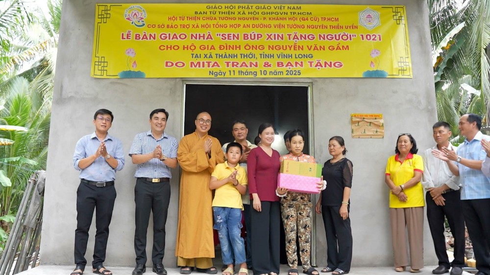 PSO - Chiều ngày 11/10/2025 (nhằm 20/8 năm Ất Tỵ), Hội Từ thiện chùa Tường Nguyên (TP.HCM) do Thượng tọa Thích Minh Phú – Ủy viên HĐTS, Phó ban Thường trực Ban Từ thiện xã hội Phật giáo TP.HCM – dẫn đoàn, đã đến thăm và bàn giao 4 căn nhà “Sen Búp Xin Tặng Người” tại tỉnh Vĩnh Long.