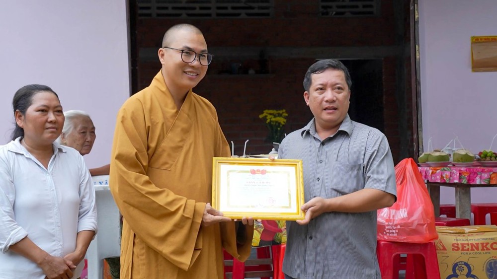 Nhân dịp này, đoàn cũng trao tặng thêm các phần quà và nhu yếu phẩm hỗ trợ đời sống hằng ngày cho các hộ gia đình, góp phần lan tỏa tinh thần tương thân tương ái của người con Phật.