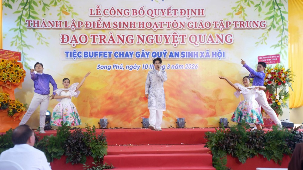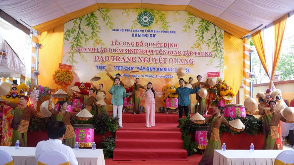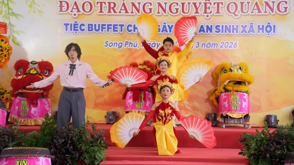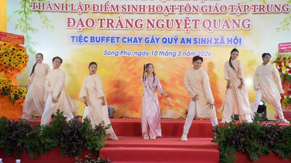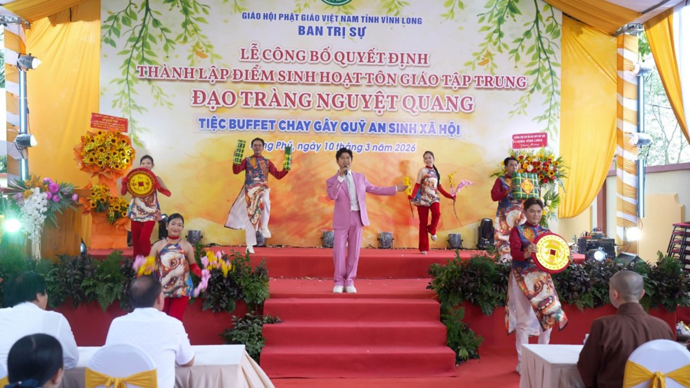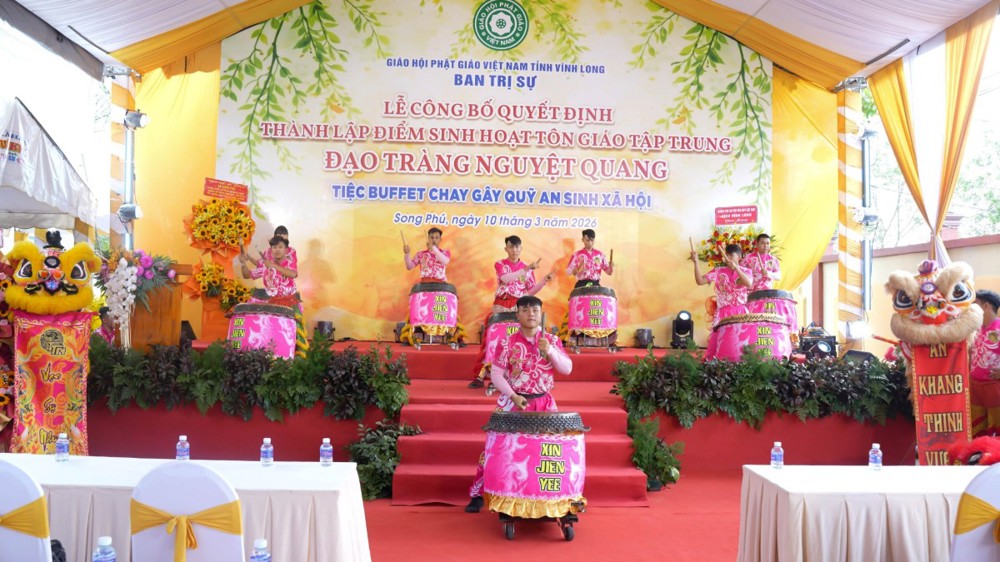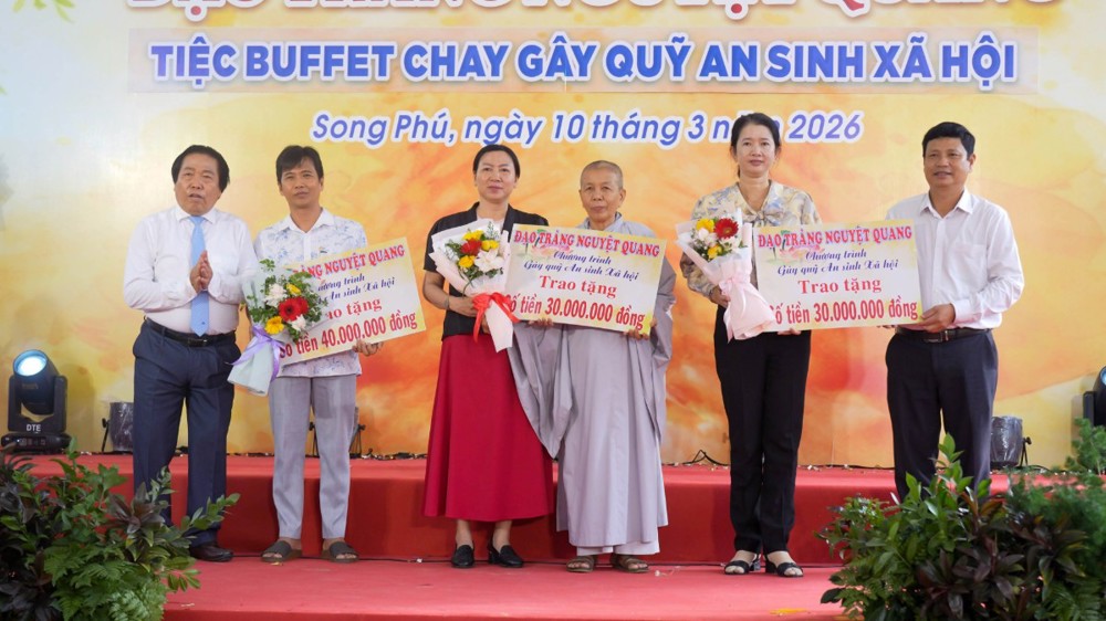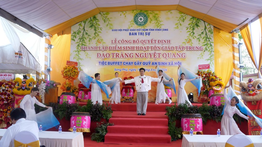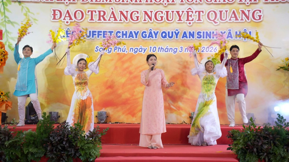 Với mong muốn lan tỏa tinh thần từ bi và sẻ chia trong cộng đồng, chiều ngày 10-3-2026 (nhằm ngày 22 tháng Giêng năm Bính Ngọ), Điểm sinh hoạt tôn giáo tập trung Nguyệt Quang (xã Song Phú, tỉnh Vĩnh Long) đã tổ chức chương trình tiệc buffet chay gây quỹ an sinh xã hội, vận động nguồn kinh phí xây dựng cầu giao thông nông thôn, nhà tình thương và hỗ trợ các hoàn cảnh khó khăn.