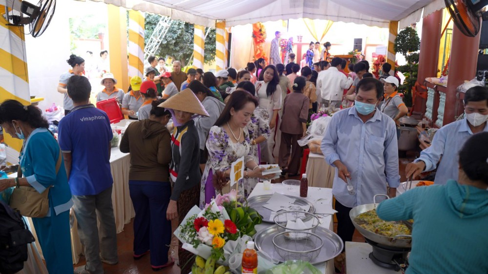 Trong khuôn khổ chương trình, Ban Tổ chức đã chuẩn bị thực đơn buffet chay phong phú với hơn 50 món ăn được chế biến công phu như gỏi ngó sen, bánh xèo chay, bún riêu chay, lẩu nấm, chè sen long nhãn… mang đến cho thực khách những trải nghiệm ẩm thực thanh đạm, lành mạnh nhưng không kém phần hấp dẫn. Bên cạnh đó, các tiết mục văn nghệ đặc sắc do các văn nghệ sĩ và Phật tử biểu diễn đã góp phần tạo nên bầu không khí ấm áp, lan tỏa thông điệp yêu thương và sẻ chia.