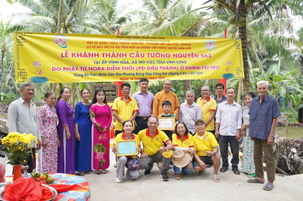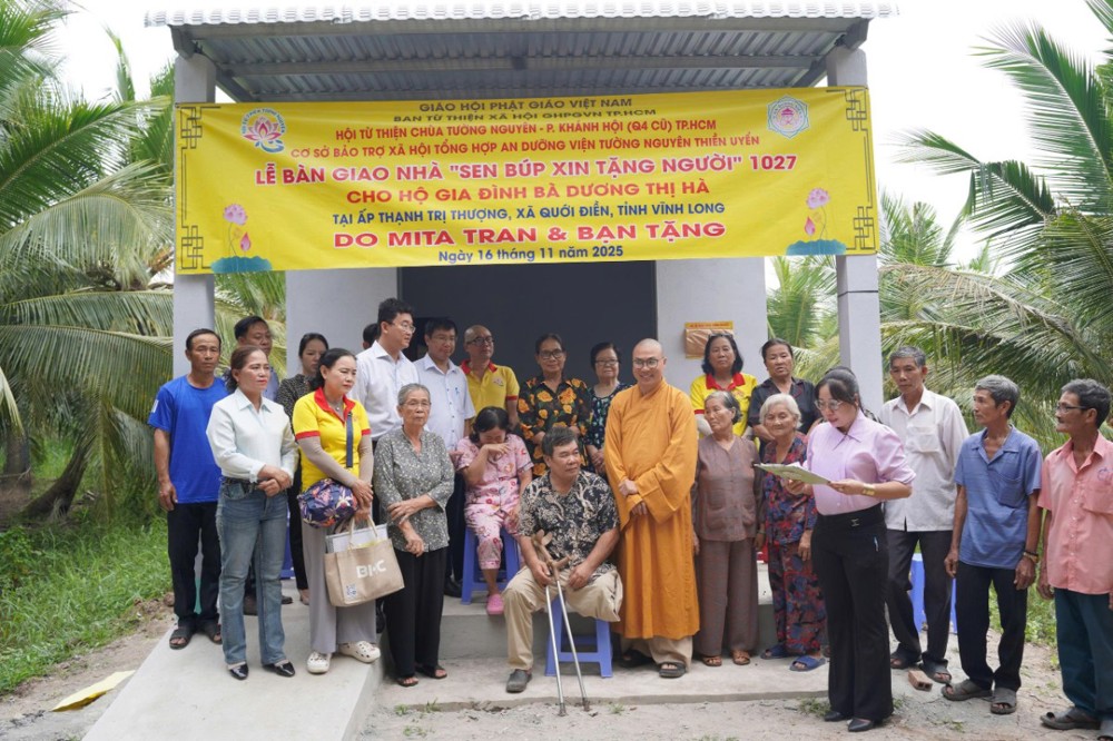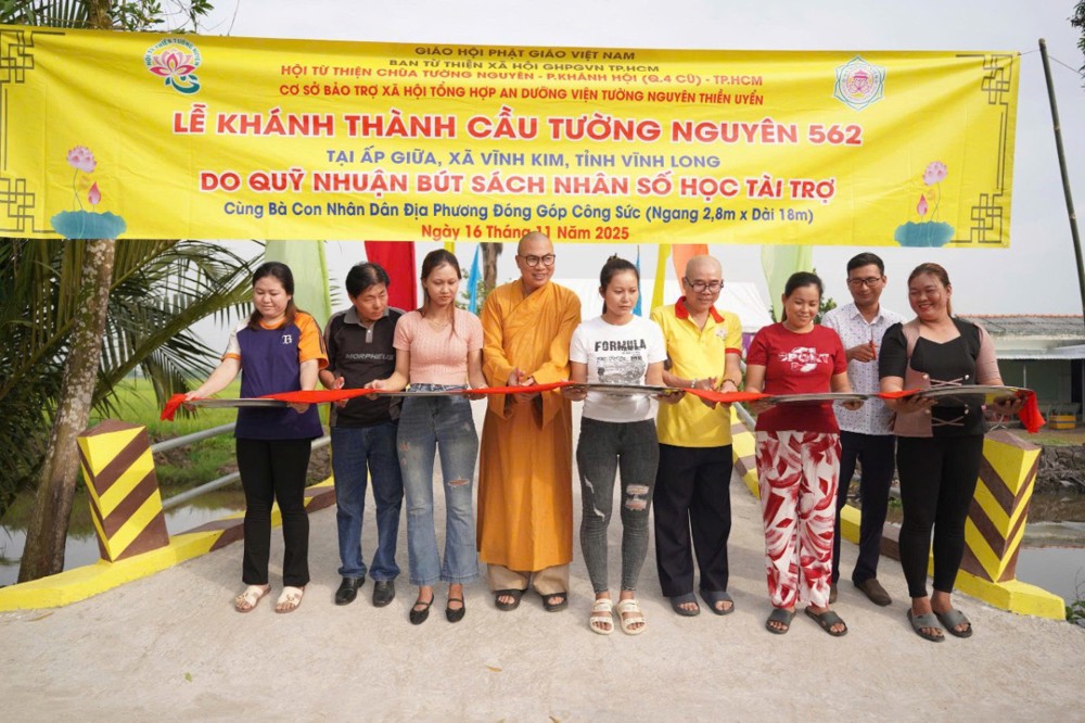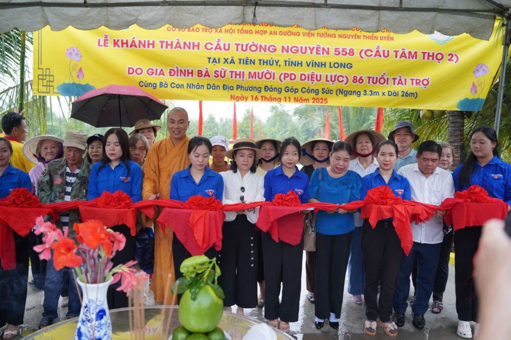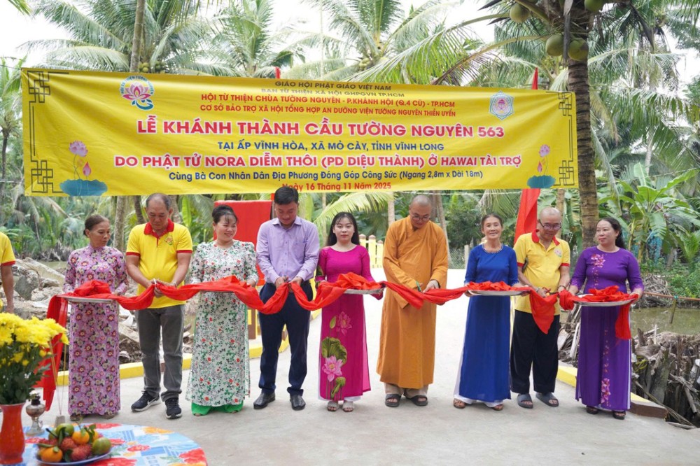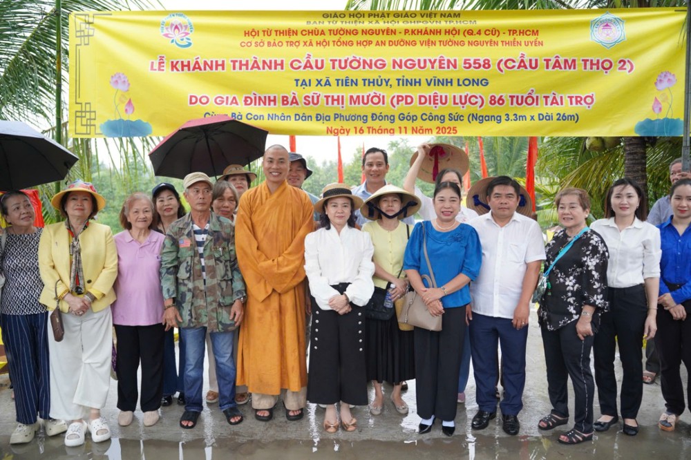 PSO - Trong hai ngày 15 và 16/11/2025, phái đoàn Ban Từ thiện xã hội (TTXH) GHPGVN TP.HCM và Hội từ thiện chùa Tường Nguyên do Thượng tọa Thích Minh Phú – Ủy viên HĐTS, Phó Trưởng ban Thường trực Ban Từ thiện xã hội GHPGVN TP.HCM, Trụ trì chùa Tường Nguyên làm trưởng đoàn, cùng các mạnh thường quân đã đến tỉnh Vĩnh Long để thực hiện lễ khánh thành và bàn giao nhiều công trình ý nghĩa phục vụ đời sống nhân dân.